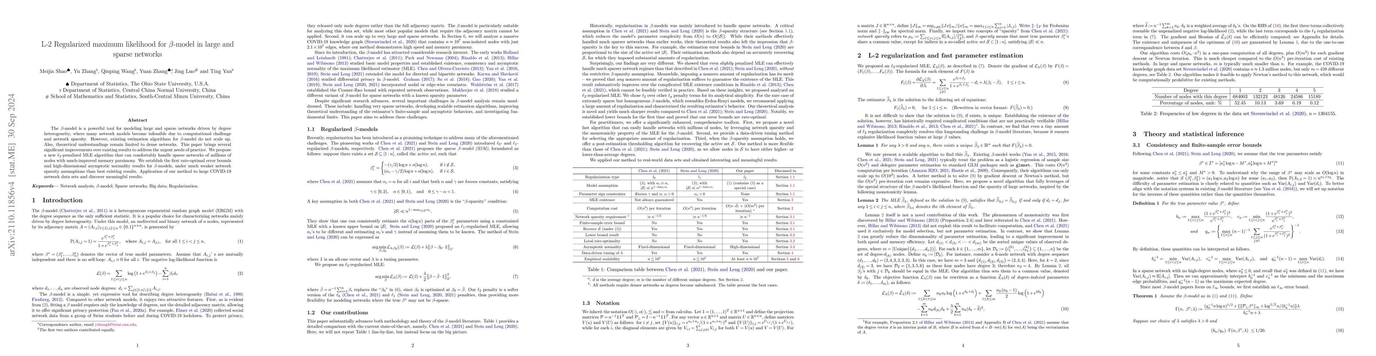 This paper proposes an $\ell_2$ penalized maximum likelihood estimation for the $\beta$-model, introducing a fast algorithm that efficiently handles large, sparse networks. It also provides new theoretical insights, including error bounds, lower-bounds, and asymptotic normality results, applicable to both small and large regularization scenarios.