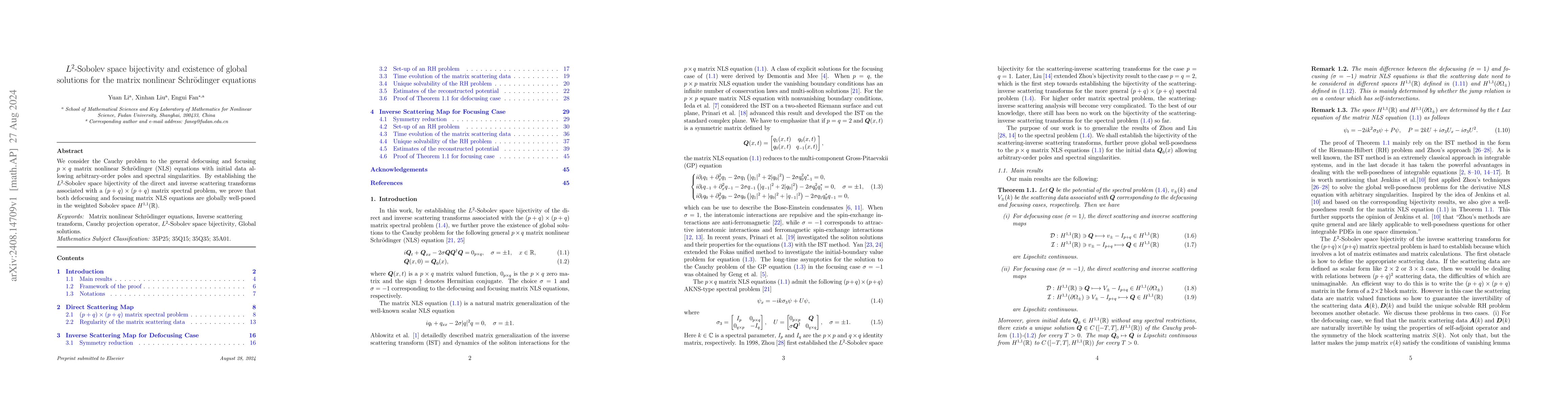 This paper establishes global well-posedness for $p\times q$ matrix nonlinear Schrödinger equations by proving $L^{2}$-Sobolev space bijectivity for associated scattering transforms, ensuring existence of global solutions in the weighted Sobolev space $H^{1,1}(\mathbb{R})$.