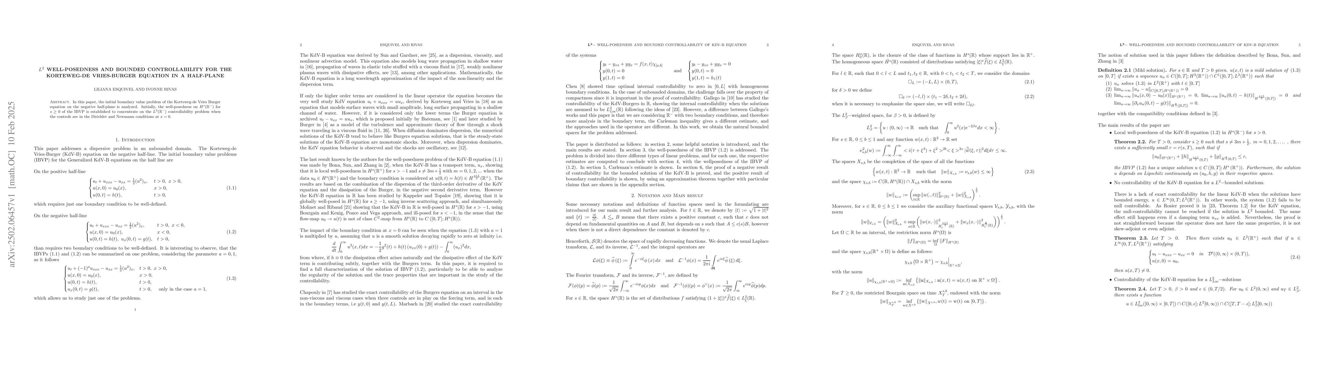 The paper presents a detailed Carleman estimate for the KdV-B equation and proves well-posedness and bounded controllability results for the initial boundary value problem on the negative half-plane.