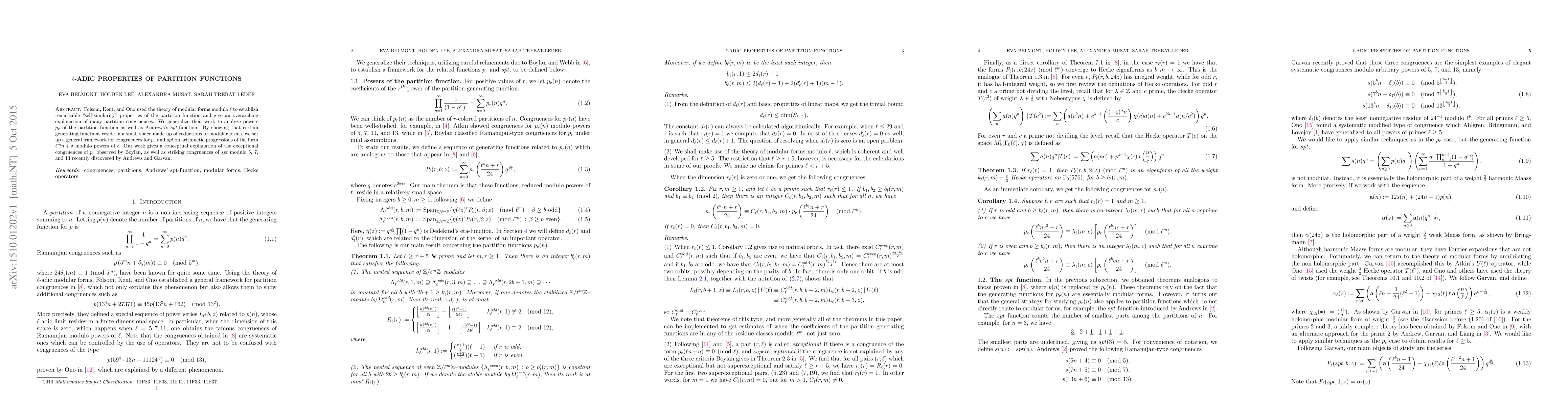Folsom, Kent, and Ono used the theory of modular forms modulo $\ell$ to establish remarkable ``self-similarity'' properties of the partition function and give an overarching explanation of many partition congruences. We generalize their work to analyze powers $p_r$ of the partition function as well as Andrews's spt-function. By showing that certain generating functions reside in a small space made up of reductions of modular forms, we set up a general framework for congruences for $p_r$ and spt on arithmetic progressions of the form $\ell^mn+\delta$ modulo powers of $\ell$. Our work gives a conceptual explanation of the exceptional congruences of $p_r$ observed by Boylan, as well as striking congruences of spt modulo 5, 7, and 13 recently discovered by Andrews and Garvan.