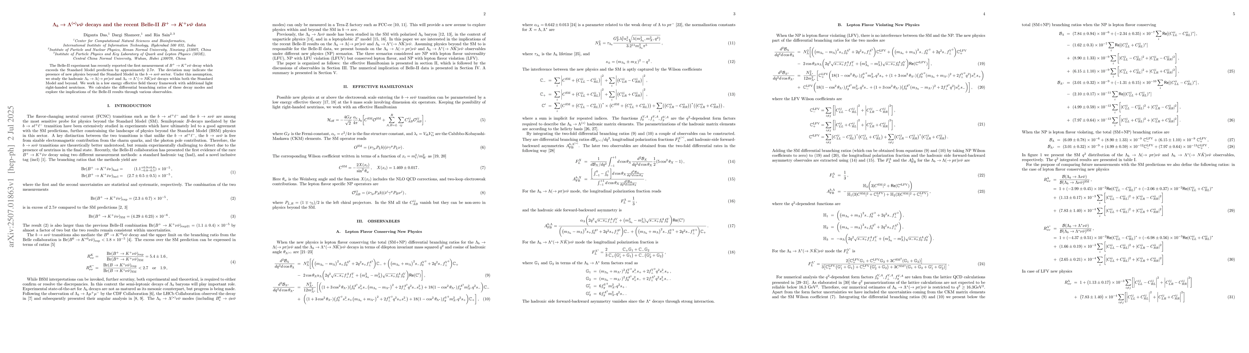 The Belle-II experiment has recently reported the first measurement of $B^+ \to K^+ \nu\bar{\nu}$ decay which exceeds the Standard Model prediction by approximately 2.7$\sigma$. The deviation may indicate the presence of new physics beyond the Standard Model in the $b\to s\nu\bar{\nu}$ sector. Under this assumption, we study the hadronic $\Lambda_b \to \Lambda(\to p\pi)\nu\bar{\nu}$ and $\Lambda_b \to \Lambda^\ast(\to N\!\bar{K})\nu\bar{\nu}$ decays within both the Standard Model and beyond. We work in a low energy effective field theory framework with additional light right-handed neutrinos. We calculate the differential branching ratios of these decay modes and explore the implications of the Belle-II results through various observables.
