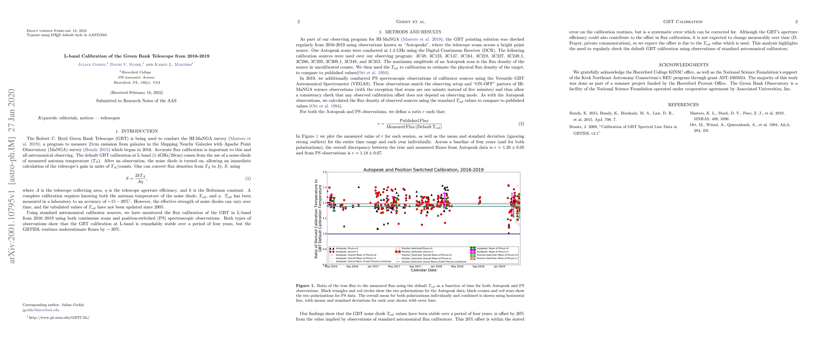 This study calibrates the Green Bank Telescope's L-band data from 2016-2019 for the HI-MaNGA survey, revealing a consistent 20% offset in calibration relative to standard GBT pipeline values. This correction aims to enhance the accuracy of neutral hydrogen measurements in nearby galaxies.