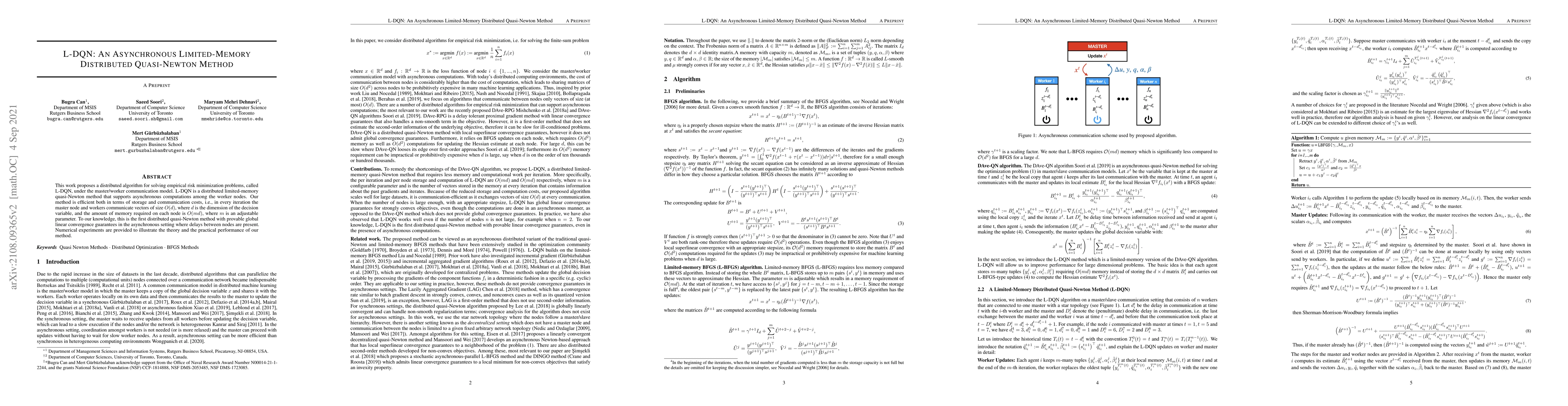 This paper introduces L-DQN, an asynchronous distributed quasi-Newton method for solving empirical risk minimization problems, demonstrating efficient storage and communication with linear convergence guarantees in asynchronous settings. Numerical experiments validate the theoretical performance of the proposed method.