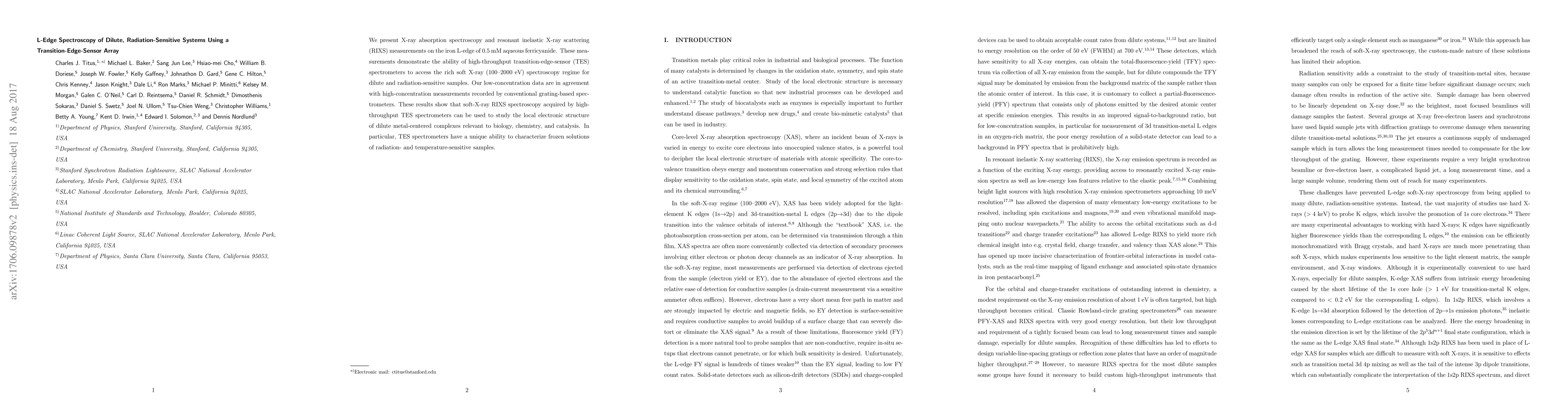 This paper demonstrates the use of high-throughput transition-edge-sensor (TES) spectrometers for X-ray absorption spectroscopy and resonant inelastic X-ray scattering (RIXS) on dilute iron ferricyanide. The results show that TES spectrometers can effectively study the electronic structure of radiation-sensitive samples, offering a valuable tool for biological, chemical, and catalytic research.