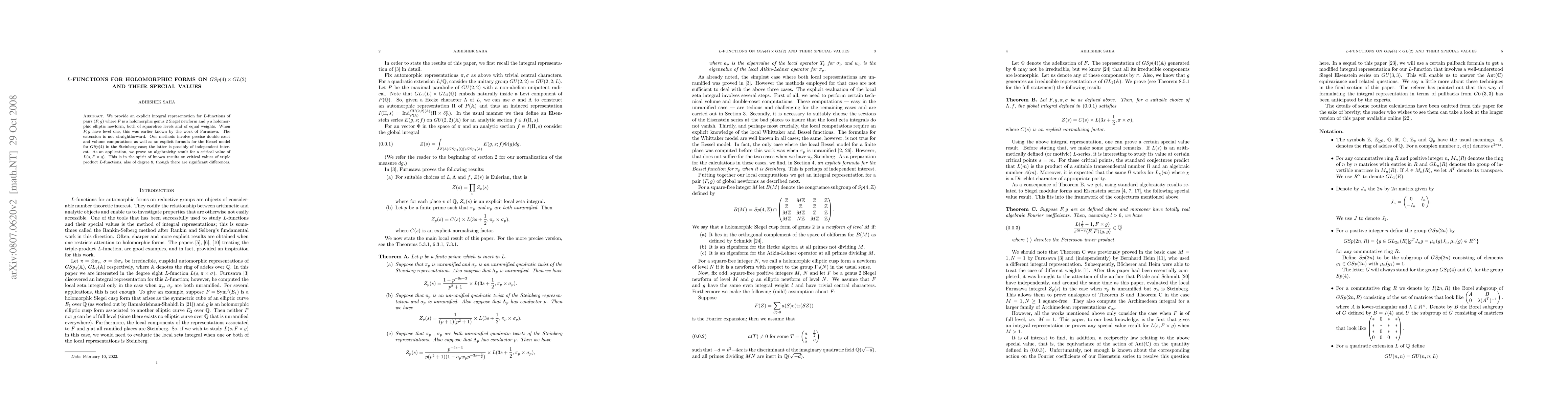 This paper provides an integral representation for L-functions associated with pairs of holomorphic Siegel and elliptic newforms, extending earlier work by Furusawa. The authors use double-coset and volume computations, along with a new Bessel model formula, to prove an algebraicity result for a critical special value of the L-function.