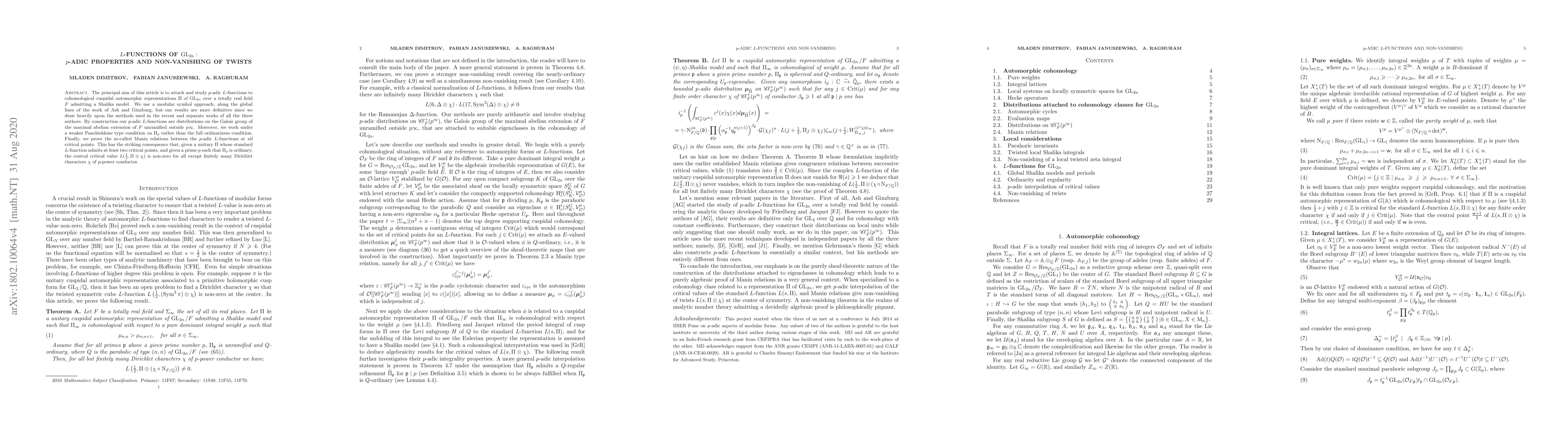 This paper constructs $p$-adic $L$-functions for cohomological cuspidal automorphic representations of $\mathrm{GL}(2n)$ using a modular symbol approach, proving non-vanishing of twists under weaker conditions than ordinariness, and establishing Manin relations at critical points.