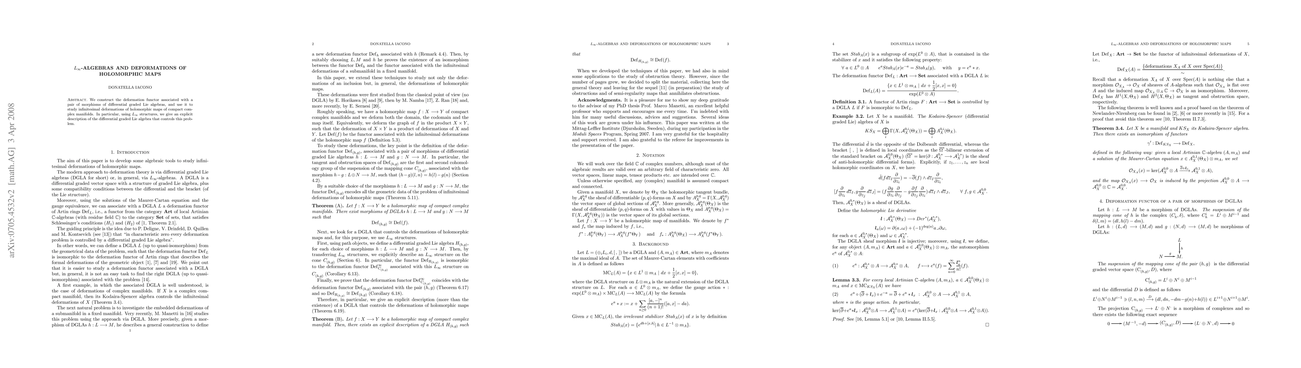 This paper constructs the deformation functor for holomorphic maps between compact complex manifolds using L-infinity algebras and differential graded Lie algebras, providing an explicit description of the underlying differential graded Lie algebra that governs these deformations.