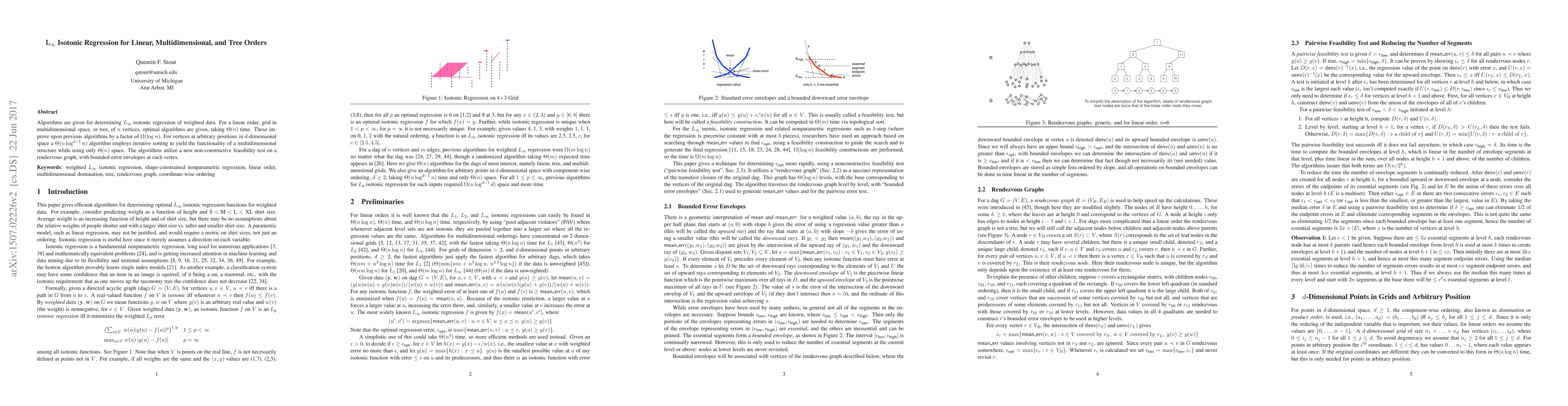 This paper presents efficient algorithms for $L_\infty$ isotonic regression on weighted data, achieving $\Theta(n)$ time complexity for linear, multidimensional grid, and tree structures. It introduces an improved $\Theta(n \log^{d-1} n)$ algorithm for $d$-dimensional space using iterative sorting, leveraging a novel feasibility test on a rendezvous graph.