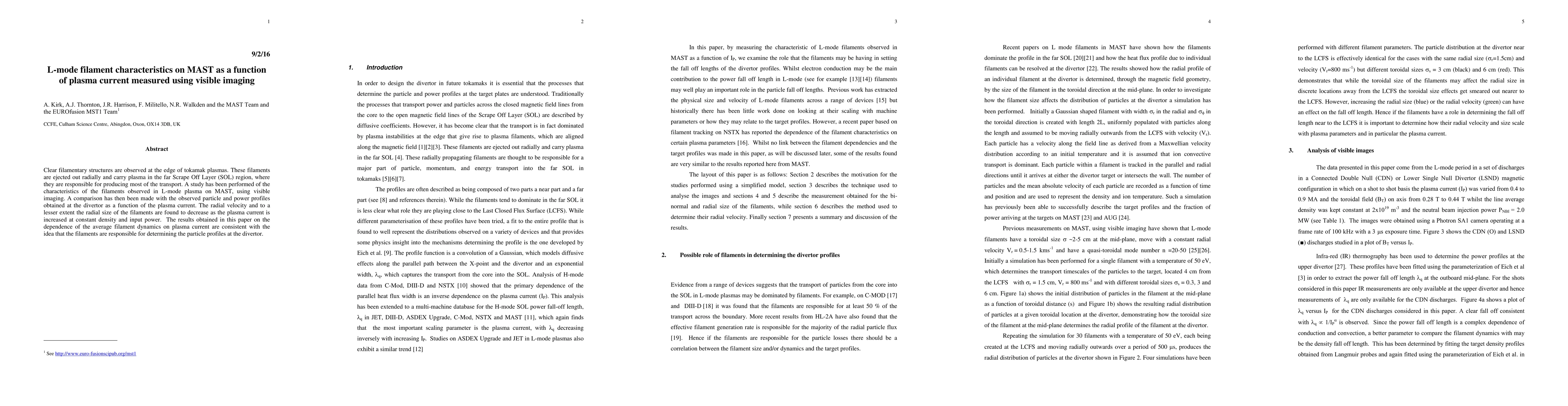 Researchers studied L-mode plasma filaments on MAST, finding that higher plasma currents decrease filament size and velocity, affecting particle transport at the divertor.