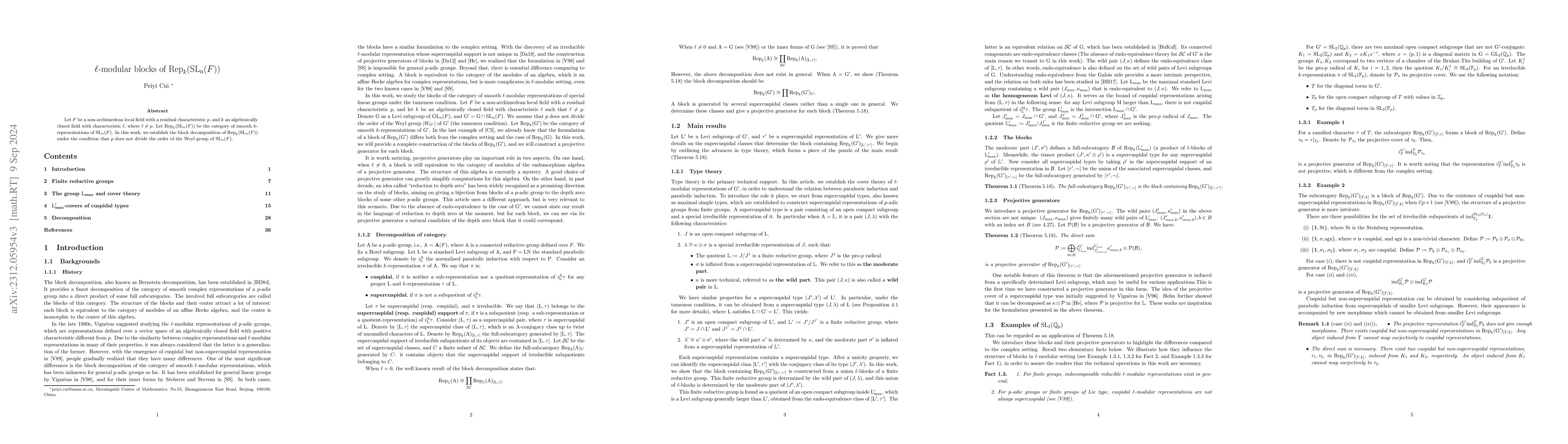 This paper establishes the block decomposition of the category of smooth k-representations of SL_n(F), where F is a non-archimedean local field and k is an algebraically closed field of characteristic l different from F's residual characteristic p, provided p does not divide the order of the Weyl group of SL_n(F).