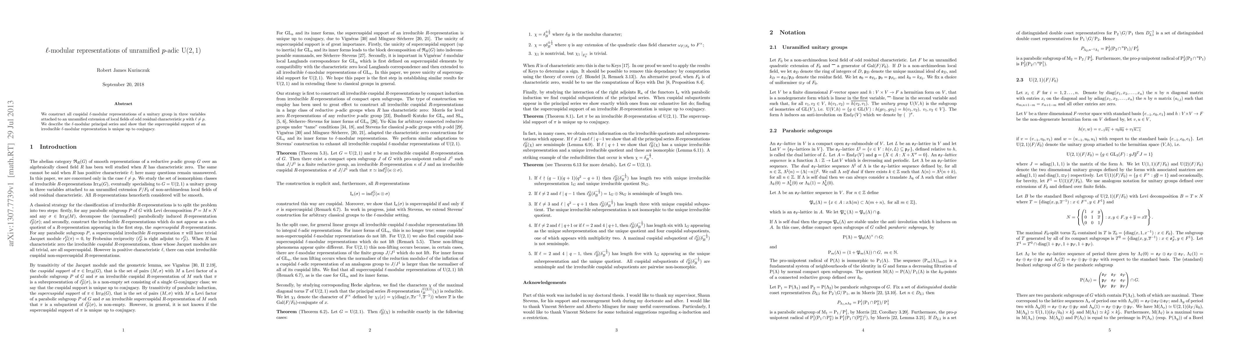 This paper constructs all cuspidal l-modular representations of the unramified unitary group U(2,1) over local fields of odd characteristic p, with l≠p. It also describes the l-modular principal series and proves the uniqueness of the supercuspidal support for irreducible representations up to conjugacy.