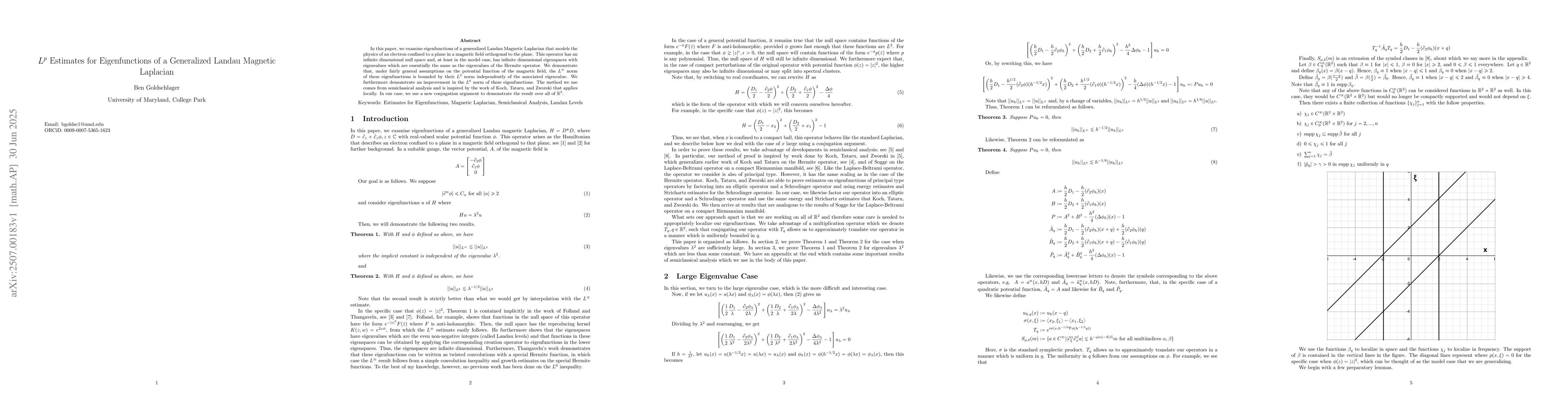 In this paper, we examine eigenfunctions of a generalized Landau Magnetic Laplacian that models the physics of an electron confined to a plane in a magnetic field orthogonal to the plane. This operator has an infinite dimensional null space and, at least in the model case, has infinite dimensional eigenspaces with eigenvalues which are essentially the same as the eigenvalues of the Hermite operator. We demonstrate that, under fairly general assumptions on the potential function of the magnetic field, the $L^\infty$ norm of these eigenfunctions is bounded by their $L^2$ norm independently of the associated eigenvalue. We furthermore demonstrate an improvement in the $L^6$ norm of these eigenfunctions. The method we use comes from semiclassical analysis and is inspired by the work of Koch, Tataru, and Zworski that applies locally. In our case, we use a new conjugation argument to demonstrate the result over all of $\mathbb{R}^2$.