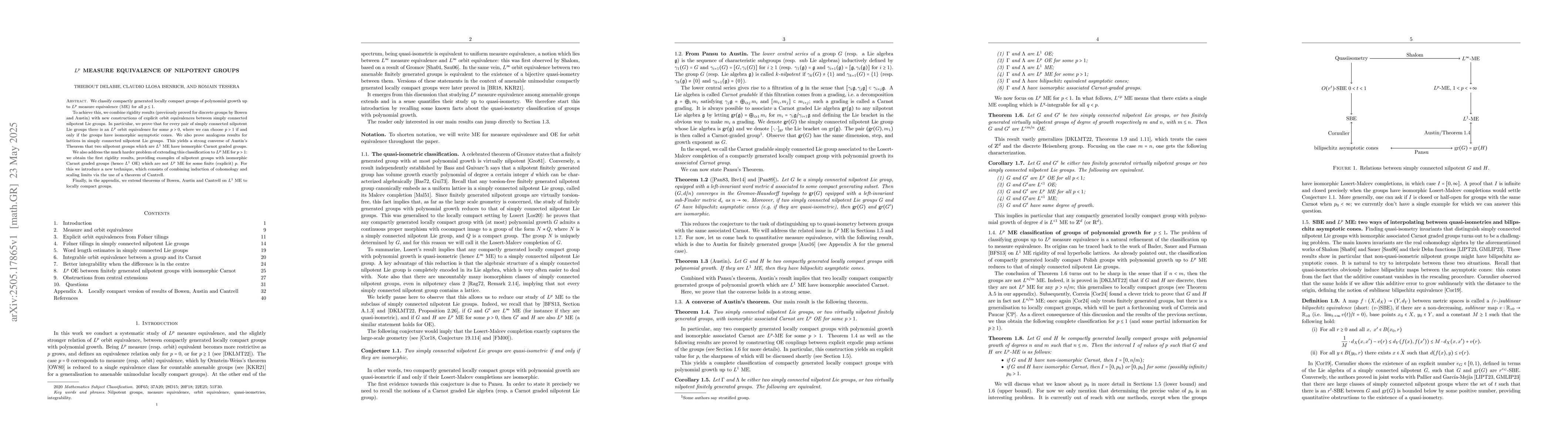Researchers classify compactly generated locally compact groups of polynomial growth up to $L^p$ measure equivalence for all $p eq 1$, combining rigidity results with new constructions of explicit orbit equivalences between simply connected nilpotent Lie groups.