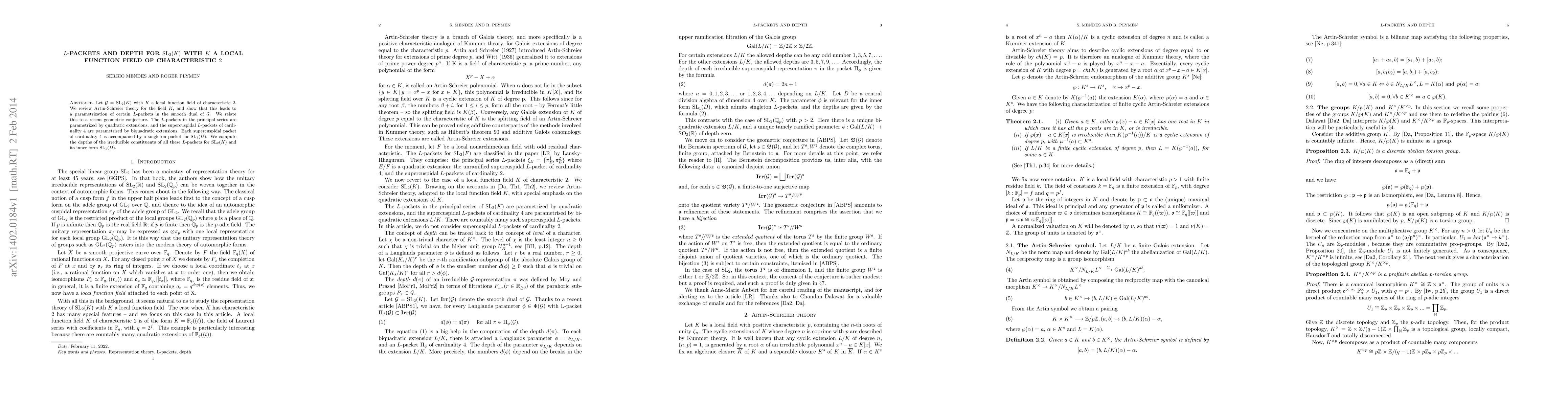 This paper explores L-packets and their depths for SL_2(K) where K is a local function field of characteristic 2. It uses Artin-Schreier theory to parametrize L-packets and connects them to a recent geometric conjecture, finding that principal series packets relate to quadratic extensions and supercuspidal packets to biquadratic extensions.