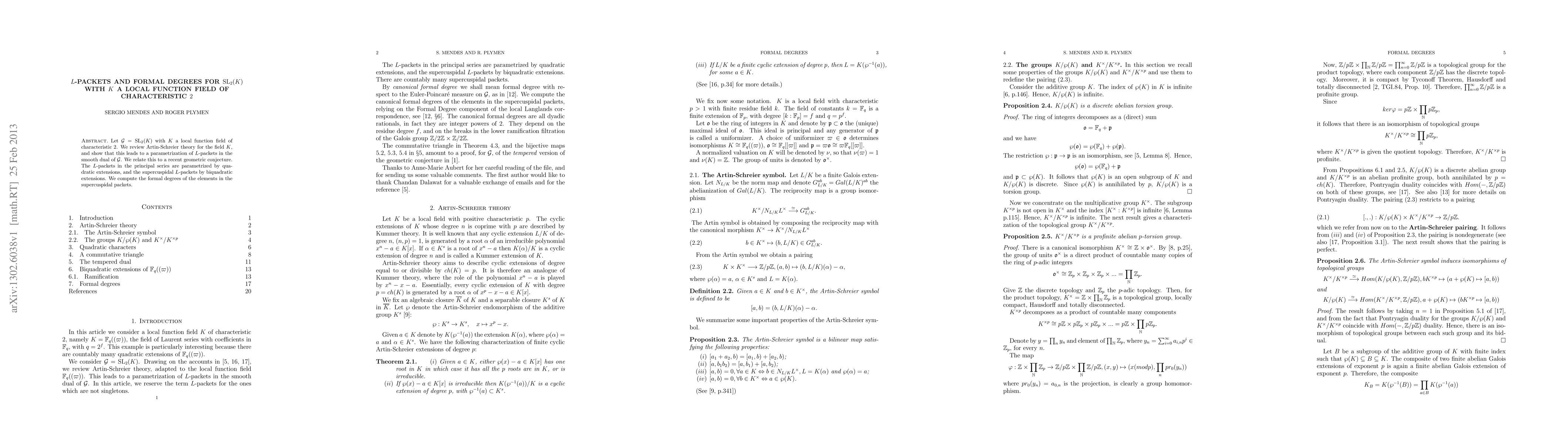 Let G = SL_2(K) with K a local function field of characteristic 2. We review Artin-Schreier theory for the field K, and show that this leads to a parametrization of L-packets in the smooth dual of G. We relate this to a recent geometric conjecture. The L-packets in the principal series are parametrized by quadratic extensions, and the supercuspidal L-packets by biquadratic extensions. We compute the formal degrees of the elements in the supercuspidal packets.