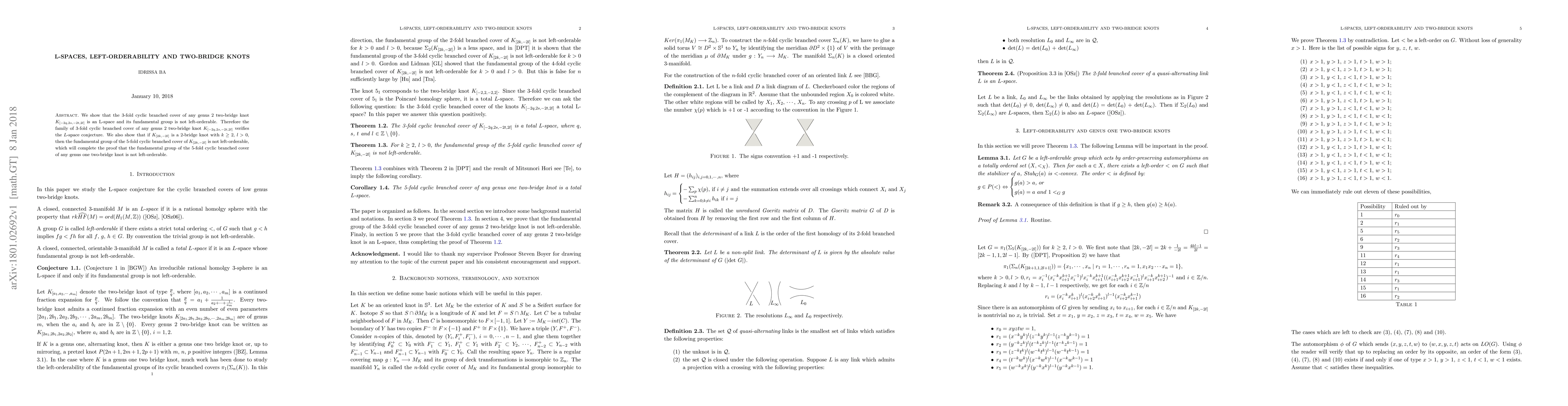 We show that the 3-fold cyclic branched cover of any genus 2 two-bridge knot $K_{[-2q,2s,-2t,2l]}$ is an L-space and its fundamental group is not left-orderable. Therefore the family of 3-fold cyclic branched cover of any genus 2 two-bridge knot $K_{[-2q,2s,-2t,2l]}$ verifies the $L$-space conjecture. We also show that if $K_{[2k,-2l]}$ is a 2-bridge knot with $k\geq 2$, $l>0$, then the fundamental group of the 5-fold cyclic branched cover of $K_{[2k,-2l]}$ is not left-orderable, which will complete the proof that the fundamental group of the 5-fold cyclic branched cover of any genus one two-bridge knot is not left-orderable.