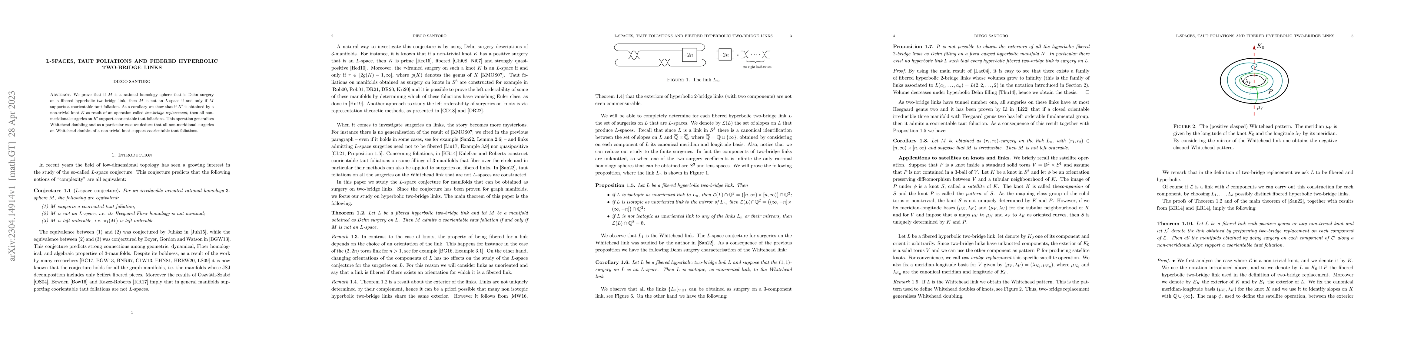 This paper proves that a rational homology sphere obtained via Dehn surgery on a fibered hyperbolic two-bridge link is not an L-space if it supports a coorientable taut foliation. It also shows that non-meridional surgeries on two-bridge replacements of a non-trivial knot support coorientable taut foliations, generalizing Whitehead doubling.