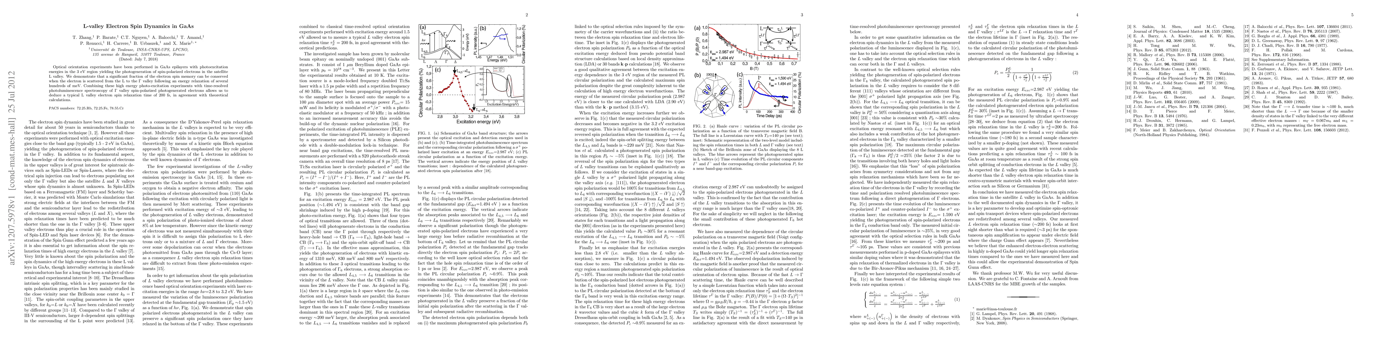 Researchers observed spin-polarized electrons in GaAs's L valley after high-energy photoexcitation, demonstrating a significant portion of electron spin memory can be conserved upon transition to the gamma valley.