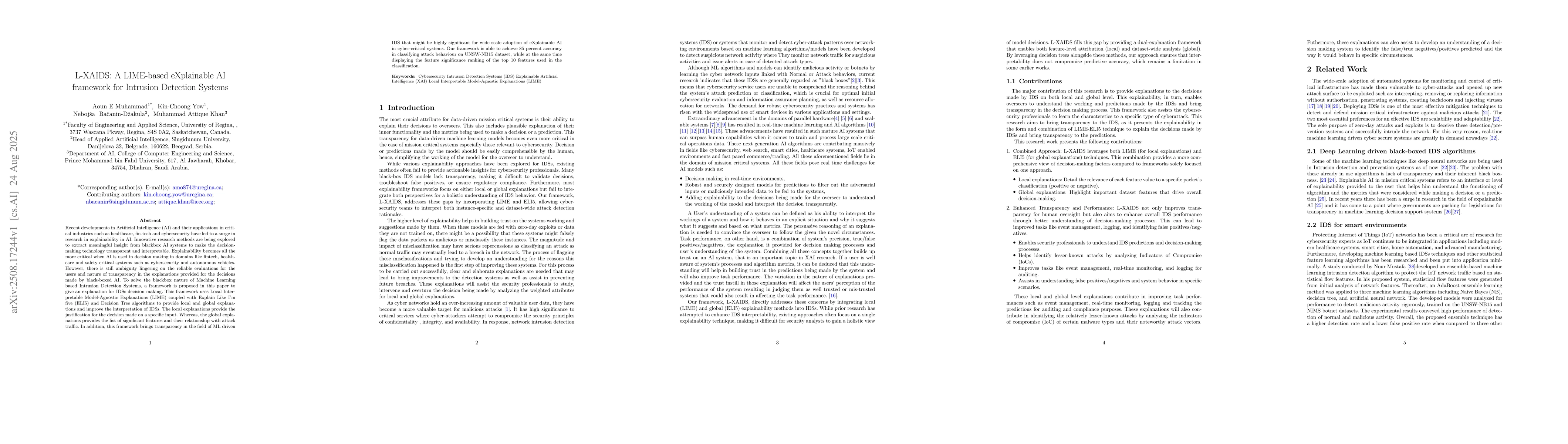 Recent developments in Artificial Intelligence (AI) and their applications in critical industries such as healthcare, fin-tech and cybersecurity have led to a surge in research in explainability in AI. Innovative research methods are being explored to extract meaningful insight from blackbox AI systems to make the decision-making technology transparent and interpretable. Explainability becomes all the more critical when AI is used in decision making in domains like fintech, healthcare and safety critical systems such as cybersecurity and autonomous vehicles. However, there is still ambiguity lingering on the reliable evaluations for the users and nature of transparency in the explanations provided for the decisions made by black-boxed AI. To solve the blackbox nature of Machine Learning based Intrusion Detection Systems, a framework is proposed in this paper to give an explanation for IDSs decision making. This framework uses Local Interpretable Model-Agnostic Explanations (LIME) coupled with Explain Like I'm five (ELI5) and Decision Tree algorithms to provide local and global explanations and improve the interpretation of IDSs. The local explanations provide the justification for the decision made on a specific input. Whereas, the global explanations provides the list of significant features and their relationship with attack traffic. In addition, this framework brings transparency in the field of ML driven IDS that might be highly significant for wide scale adoption of eXplainable AI in cyber-critical systems. Our framework is able to achieve 85 percent accuracy in classifying attack behaviour on UNSW-NB15 dataset, while at the same time displaying the feature significance ranking of the top 10 features used in the classification.
