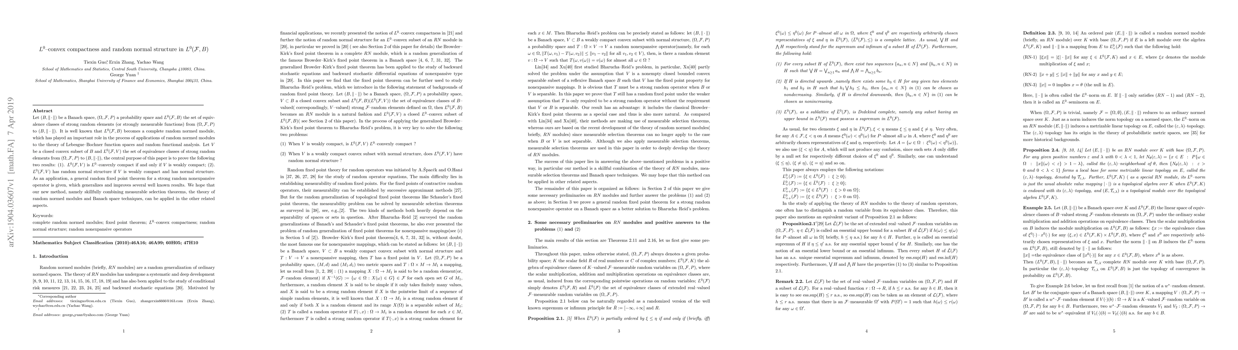 Let $(B,\|\cdot\|)$ be a Banach space, $(\Omega,\mathcal{F},P)$ a probability space and $L^0(\mathcal{F},B)$ the set of equivalence classes of strong random elements (or strongly measurable functions) from $(\Omega,\mathcal{F},P)$ to $(B,\|\cdot\|)$. It is well known that $L^0(\mathcal{F},B)$ becomes a complete random normed module, which has played an important role in the process of applications of random normed modules to the theory of Lebesgue--Bochner function spaces and random functional analysis. Let $V$ be a closed convex subset of $B$ and $L^0(\mathcal{F},V)$ the set of equivalence classes of strong random elements from $(\Omega,\mathcal{F},P)$ to $(B,\|\cdot\|)$, the central purpose of this paper is to prove the following two results: (1). $L^0(\mathcal{F},V)$ is $L^0$--convexly compact if and only if $V$ is weakly compact; (2). $L^0(\mathcal{F},V)$ has random normal structure if $V$ is weakly compact and has normal structure. As an application, a general random fixed point theorem for a strong random nonexpansive operator is given, which generalizes and improves several well known results. We hope that our new method, namely skillfully combining measurable selection theorems, the theory of random normed modules and Banach space techniques, can be applied in the other related aspects.