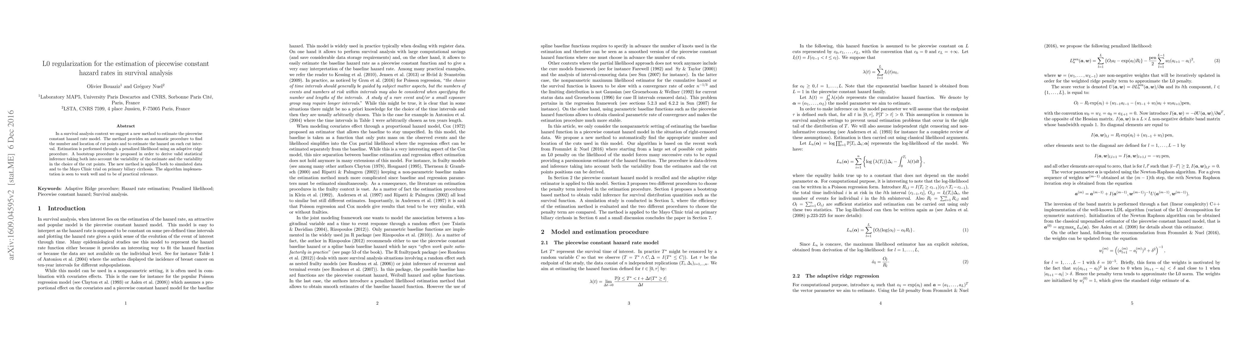 A new method for estimating piecewise constant hazard rates in survival analysis is proposed, using a penalized likelihood approach with adaptive ridge procedure and bootstrap validation, which shows promising results on both simulated data and real-world application.
