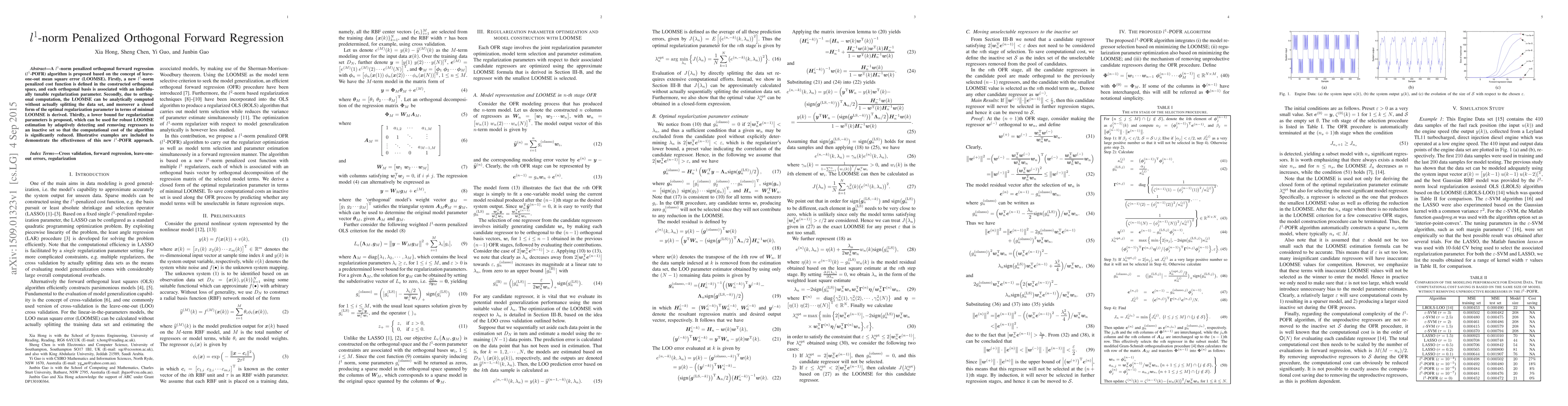 The l1-norm penalized orthogonal forward regression (l1-POFR) algorithm is introduced to minimize leave-one-out mean square error (LOOMSE) through an analytically computed, closed-form optimal regularization parameter, reducing computational costs by adaptively managing inactive regressors. Illustrative examples demonstrate the effectiveness of this new approach.