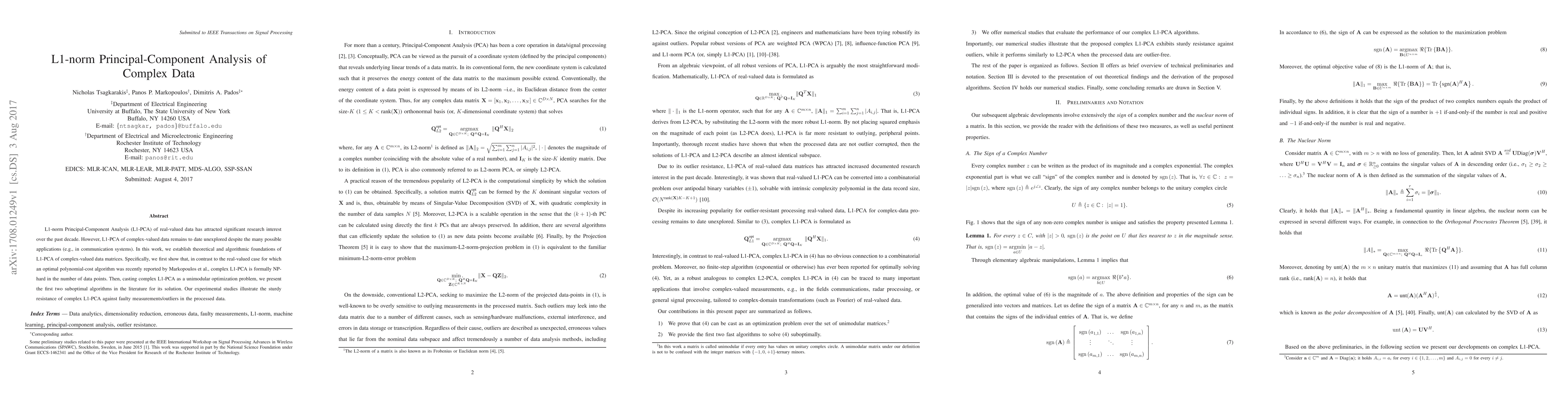 The paper introduces a unimodular optimization formulation for complex L1-PCA and provides the first suboptimal iterative algorithms for its solution.