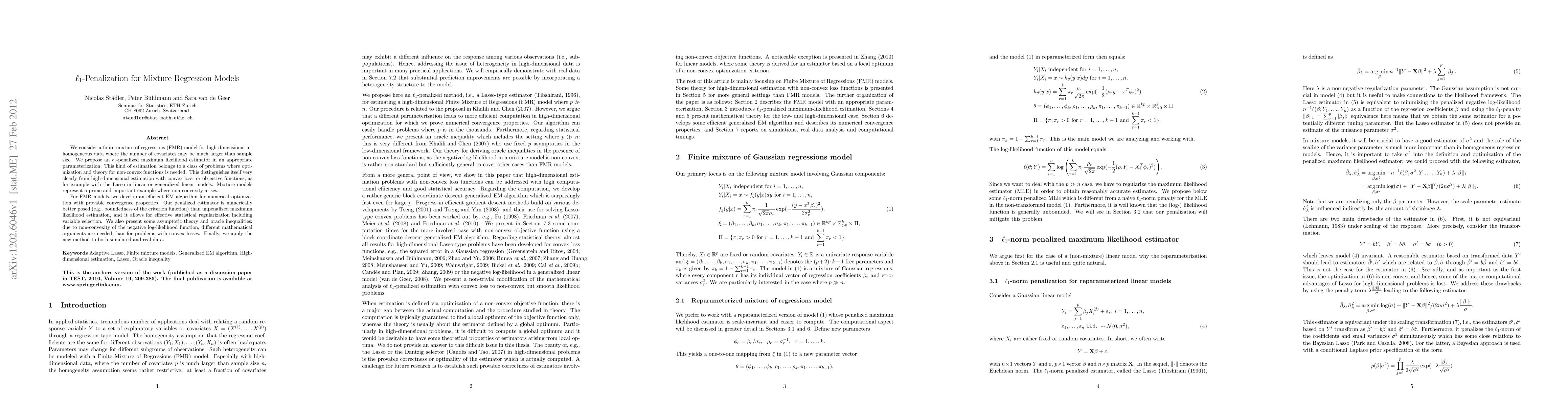 This paper proposes an l1-penalized maximum likelihood estimator for finite mixture of regression models in high-dimensional settings, employing an efficient EM algorithm for optimization. The method addresses non-convexity issues and provides effective regularization and variable selection, supported by asymptotic theory and oracle inequalities.