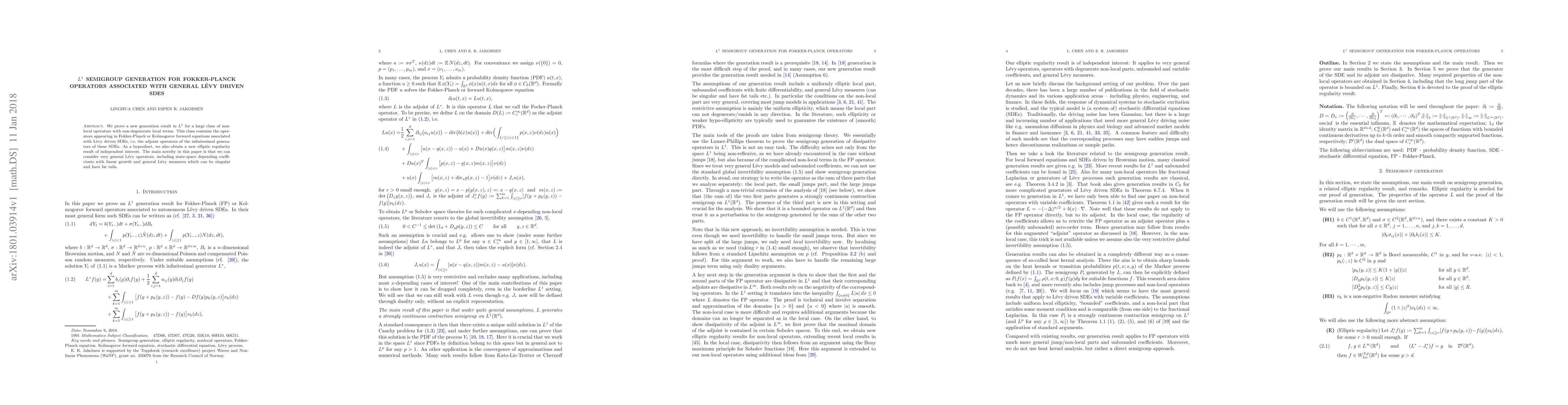 We prove a new generation result in $L^1$ for a large class of non-local operators with non-degenerate local terms. This class contains the operators appearing in Fokker-Planck or Kolmogorov forward equations associated with L\'evy driven SDEs, i.e. the adjoint operators of the infinitesimal generators of these SDEs. As a byproduct, we also obtain a new elliptic regularity result of independent interest. The main novelty in this paper is that we can consider very general L\'evy operators, including state-space depending coefficients with linear growth and general L\'evy measures which can be singular and have fat tails.