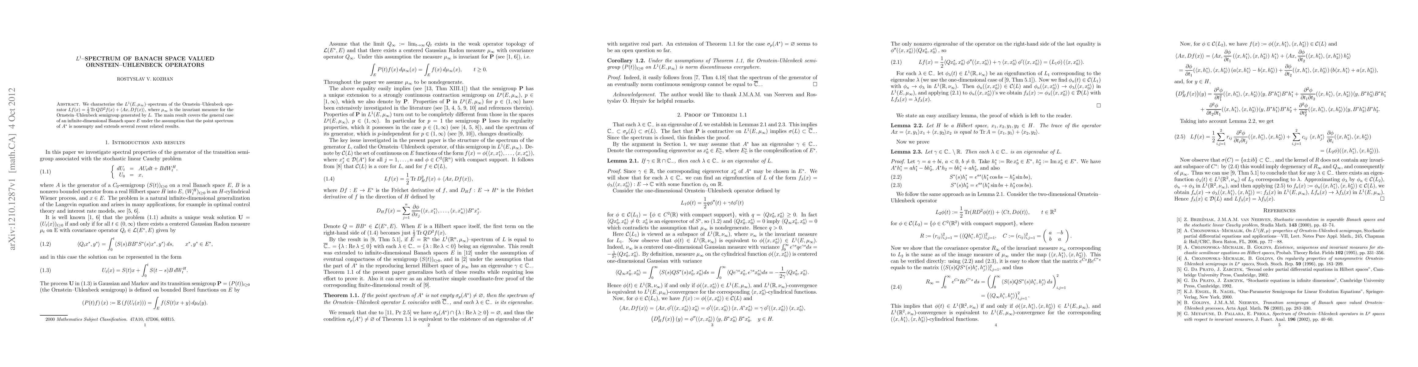 This paper characterizes the $L^1$ spectrum of the Ornstein-Uhlenbeck operator in the context of infinite-dimensional Banach spaces, extending previous results by considering cases where the point spectrum of the associated drift operator is nonempty.