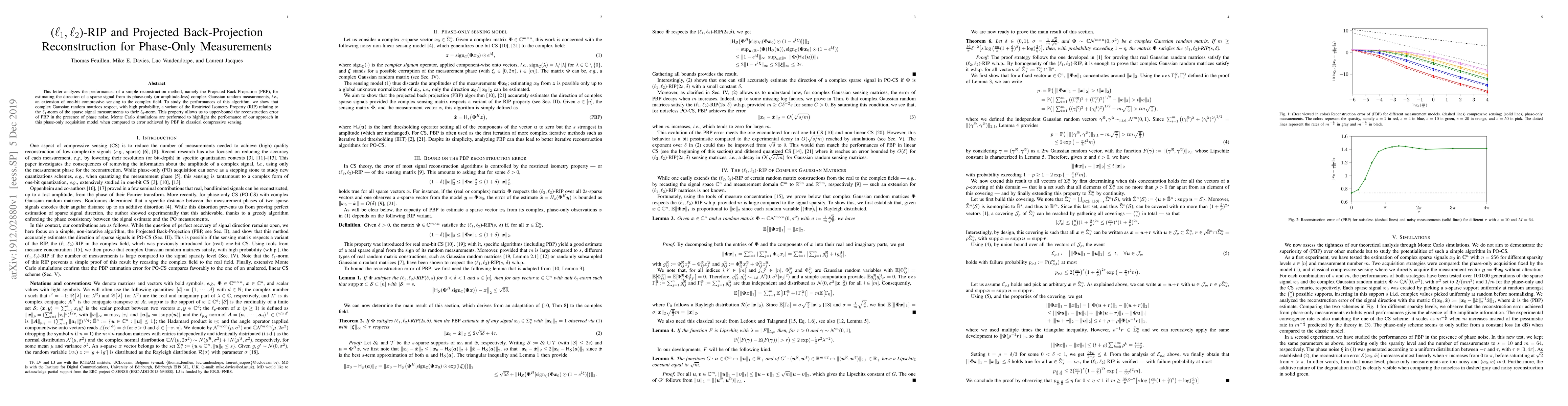 A method called Projected Back-Projection (PBP) is analyzed for reconstructing a sparse signal from phase-only measurements, with promising results in certain conditions. PBP performs well compared to classical compressive sensing methods.