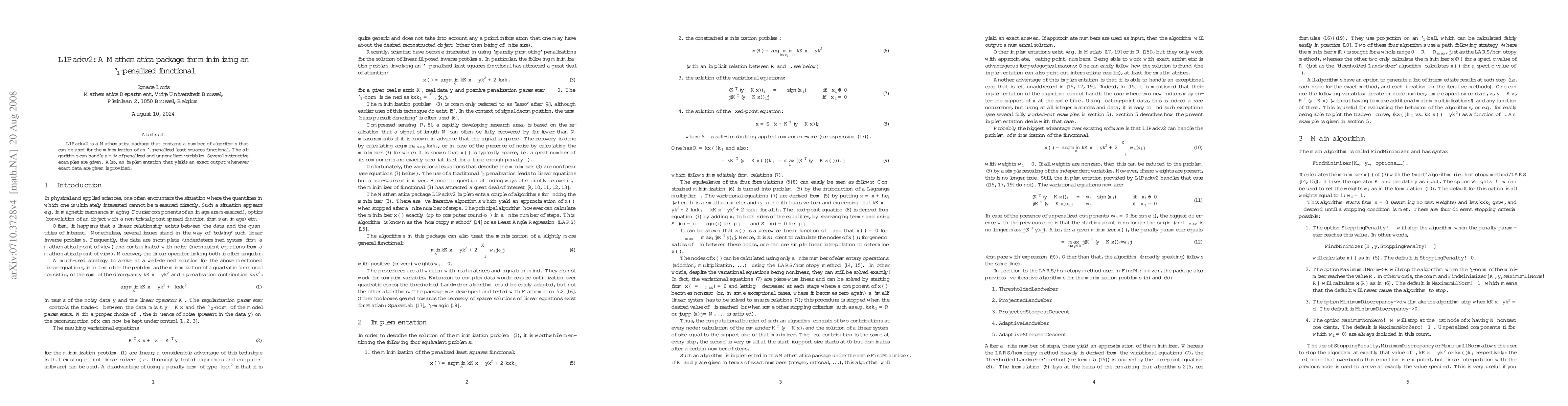 L1Packv2 is a Mathematica package that contains a number of algorithms that can be used for the minimization of an $\ell_1$-penalized least squares functional. The algorithms can handle a mix of penalized and unpenalized variables. Several instructive examples are given. Also, an implementation that yields an exact output whenever exact data are given is provided.