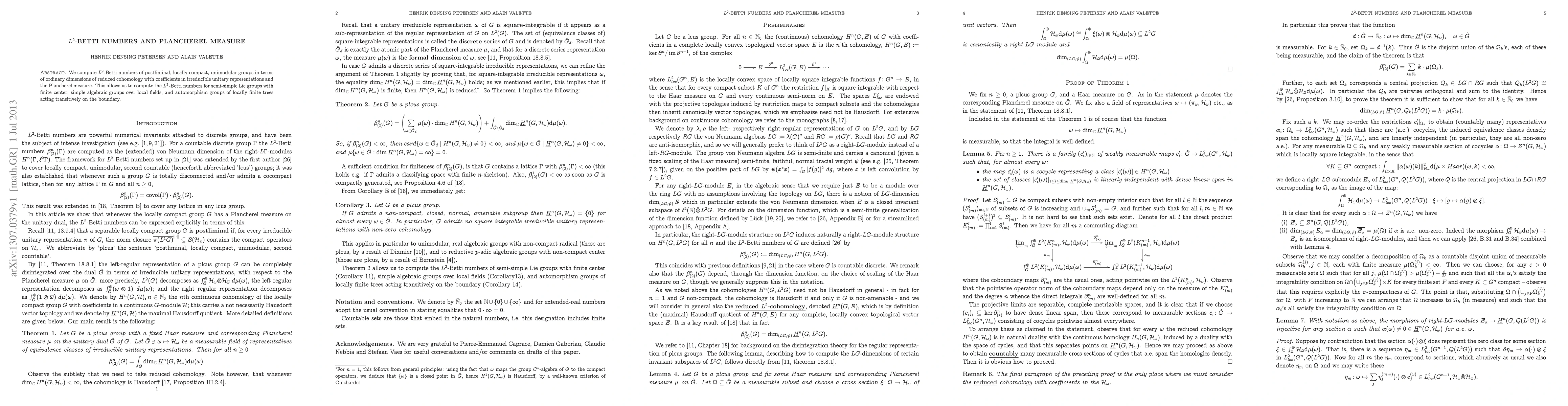 This paper computes $L^2$-Betti numbers for postliminal, locally compact, unimodular groups using the ordinary dimensions of reduced cohomology and the Plancherel measure, applying the results to semi-simple Lie groups, simple algebraic groups, and automorphism groups of locally finite trees.