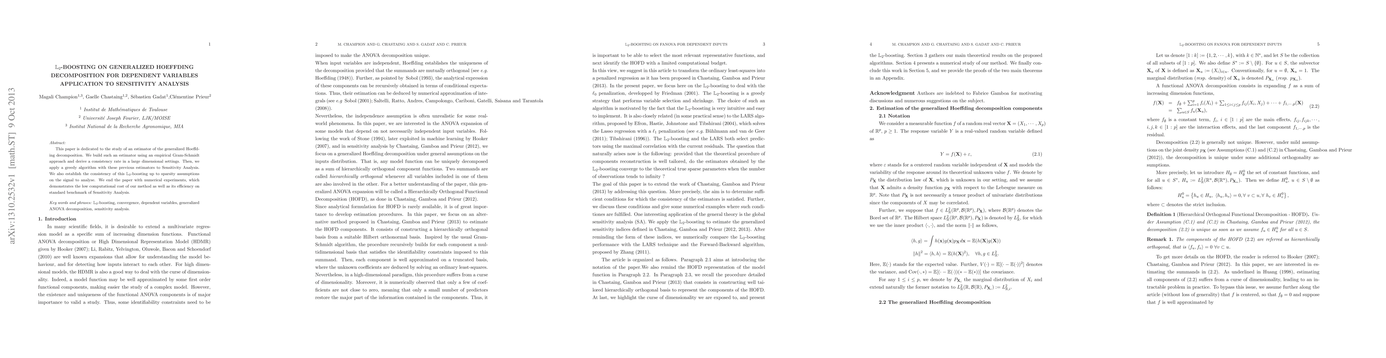 This paper is dedicated to the study of an estimator of the generalized Hoeffding decomposition. We build such an estimator using an empirical Gram-Schmidt approach and derive a consistency rate in a large dimensional settings. Then, we apply a greedy algorithm with these previous estimators to Sensitivity Analysis. We also establish the consistency of this $\mathbb L_2$-boosting up to sparsity assumptions on the signal to analyse. We end the paper with numerical experiments, which demonstrates the low computational cost of our method as well as its efficiency on standard benchmark of Sensitivity Analysis.
