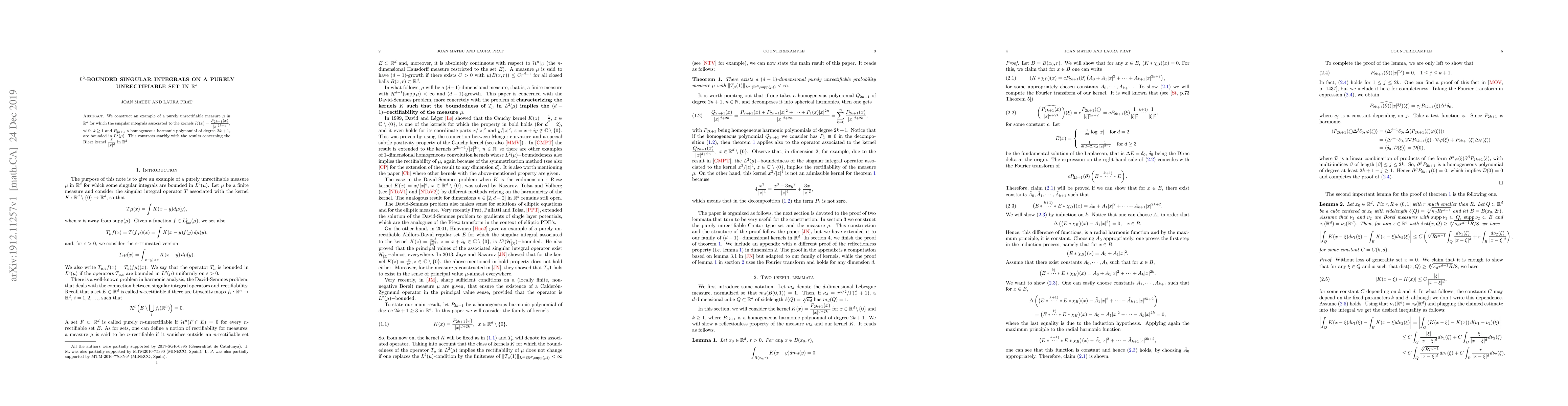 This paper presents a purely unrectifiable measure $\mu$ in $\mathbb{R}^d$ where singular integrals associated with specific kernels are $L^2(\mu)$-bounded, contrasting with the unbounded nature of integrals associated with the Riesz kernel. This finding highlights unique properties of certain singular integrals on unrectifiable sets.