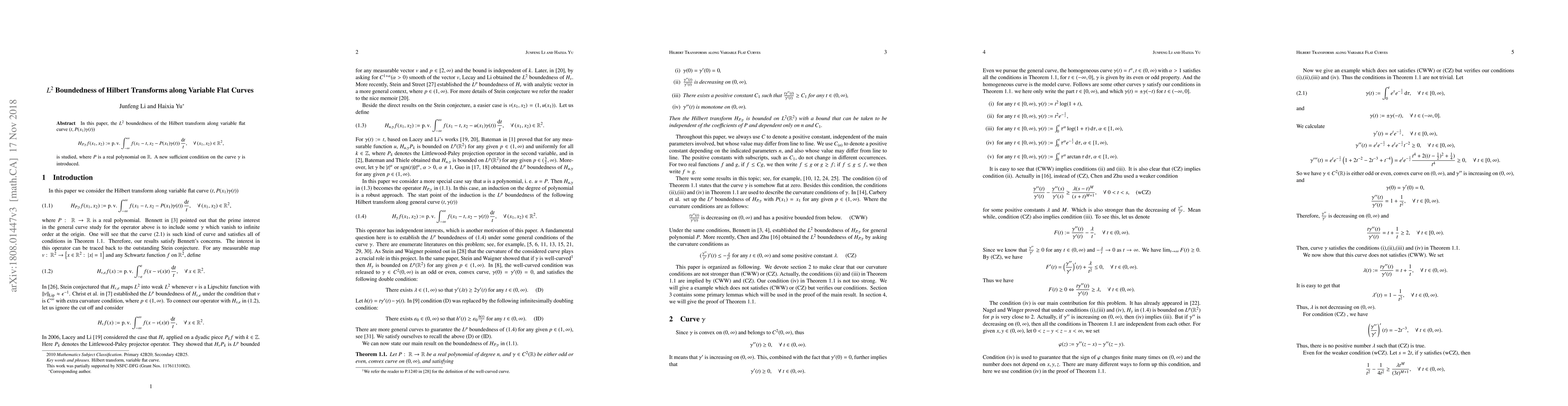 This paper investigates the $L^2$ boundedness of the Hilbert transform along variable flat curves defined by $(t,P(x_1)\gamma(t))$, introducing a new sufficient condition on the curve $\gamma$ to ensure the boundedness.