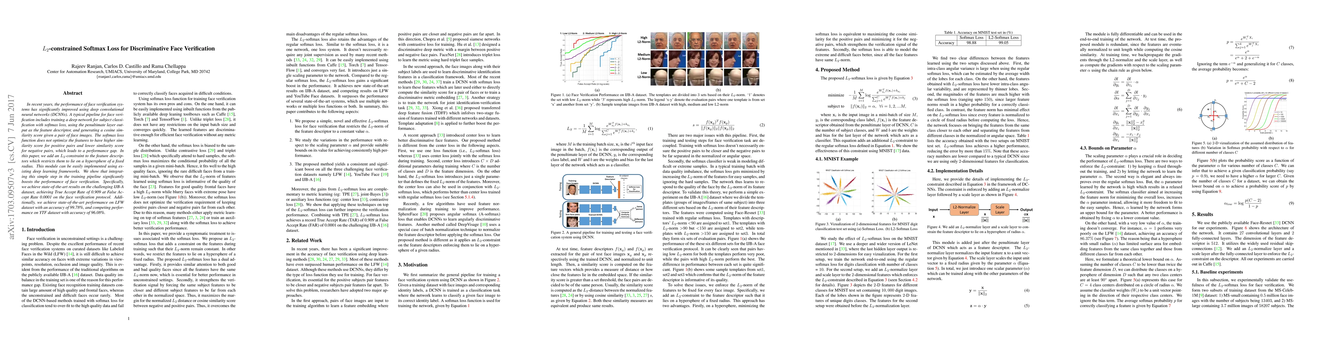 This paper proposes an L2-constrained softmax loss to enhance discriminative face verification using deep convolutional neural networks. By constraining feature descriptors to lie on a hypersphere, the method significantly improves performance, achieving state-of-the-art results on IJB-A, LFW, and competitive results on YTF datasets.