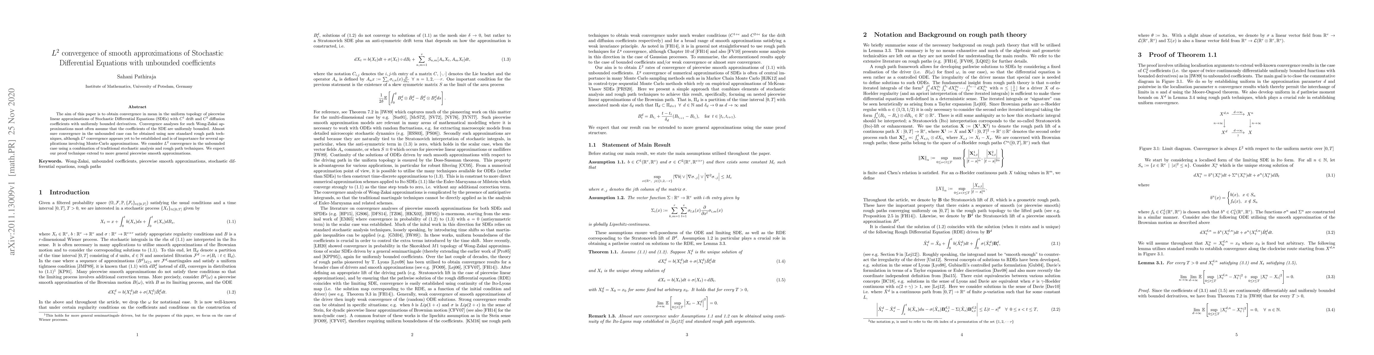 This paper investigates the $L^2$ convergence of piecewise linear approximations of Stochastic Differential Equations (SDEs) with smooth but unbounded coefficients, extending beyond the usual bounded coefficient assumption. It combines traditional stochastic analysis with rough path techniques to achieve convergence, with potential for broader application to Monte-Carlo approximations.