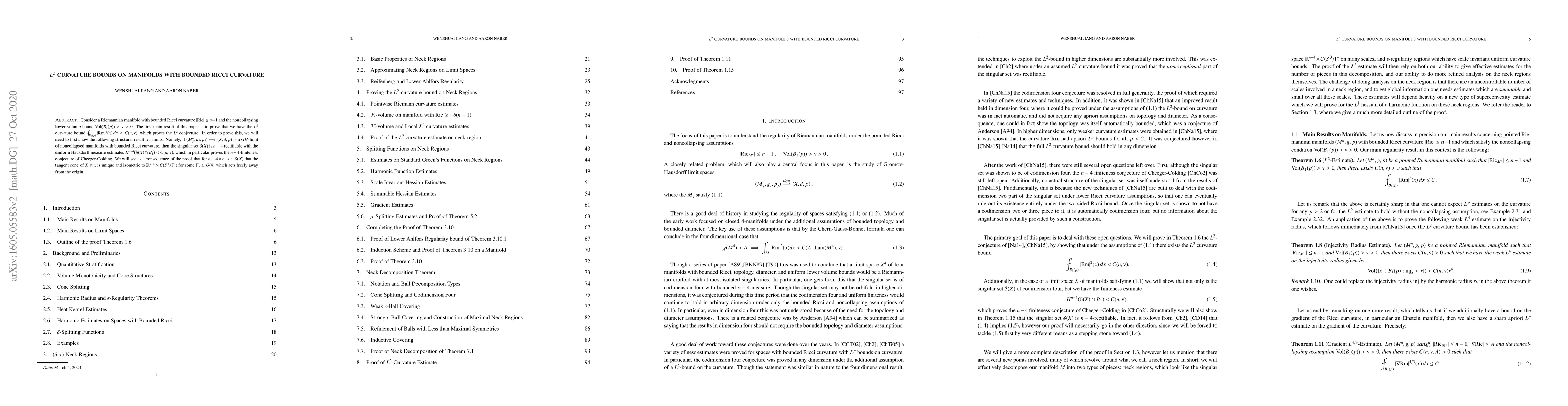 The paper employs a combination of geometric analysis and harmonic analysis techniques, utilizing the theory of $L^2$ curvature bounds and the Cheeger-Colding theory of Gromov-Hausdorff limits to study manifolds with bounded Ricci curvature.