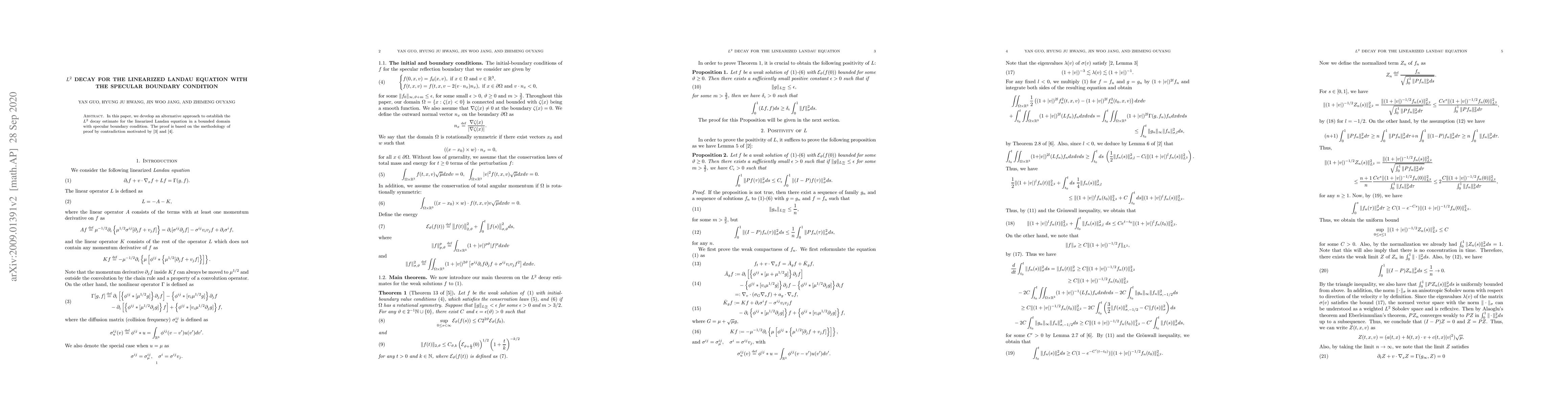 In this paper, we develop an alternative approach to establish the $L^2$ decay estimate for the linearized Landau equation in a bounded domain with specular boundary condition. The proof is based on the methodology of proof by contradiction motivated by [Guo, Comm. Pure Appl. Math., 55(9):1104-1135, 2002] and [Guo, Arch. Ration. Mech. Anal., 197(3):713-809, 2010].