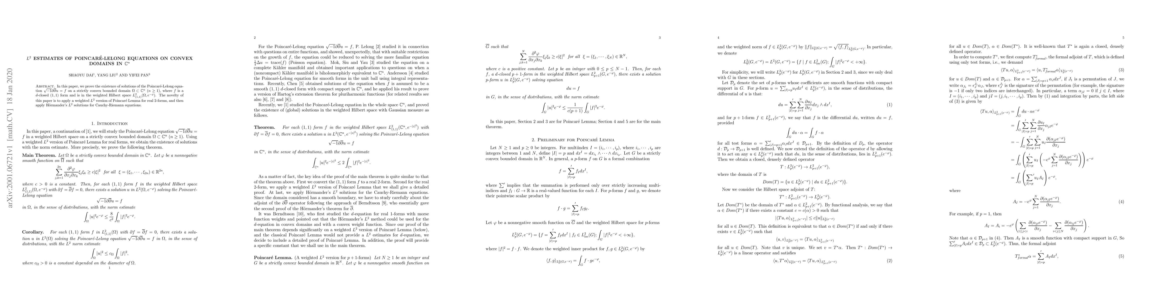 In this paper, we prove the existence of solutions of the Poincar\'e-Lelong equation $\sqrt{-1}\partial\bar{\partial}u=f$ on a strictly convex bounded domain $\Omega\subset\mathbb{C}^n$ $(n\geq1)$, where $f$ is a $d$-closed $(1,1)$ form and is in the weighted Hilbert space $L^2_{(1,1)}(\Omega,e^{-\varphi})$. The novelty of this paper is to apply a weighted $L^2$ version of Poincar\'e Lemma for real $2$-forms, and then apply H\"{o}rmander's $L^2$ solutions for Cauchy-Riemann equations.