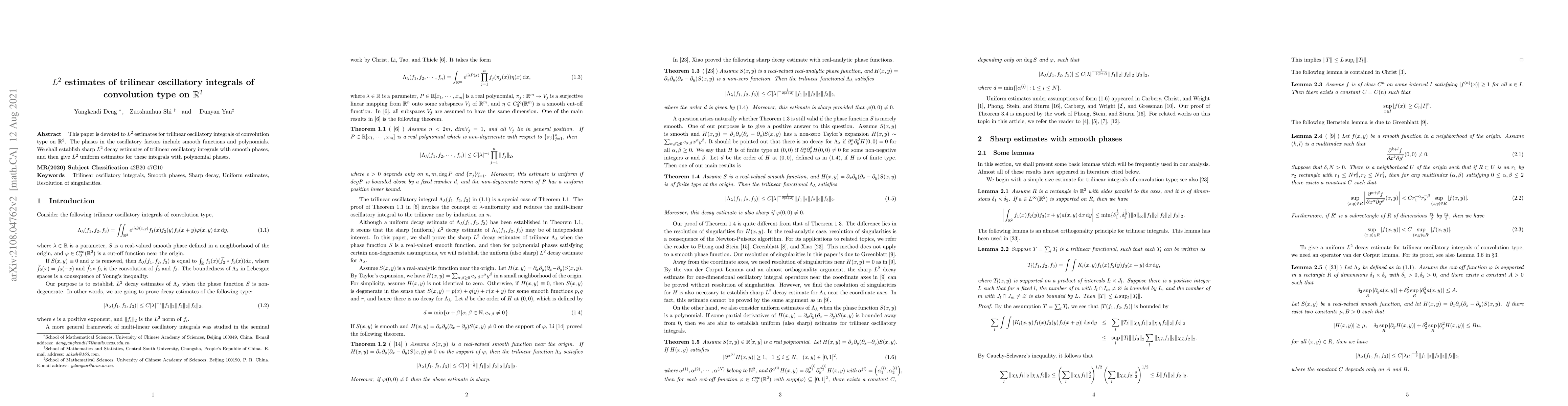 This paper provides $L^2$ estimates for trilinear oscillatory integrals of convolution type on $\mathbb{R}^2$, establishing sharp decay estimates for smooth phases and uniform $L^2$ estimates for polynomial phases.