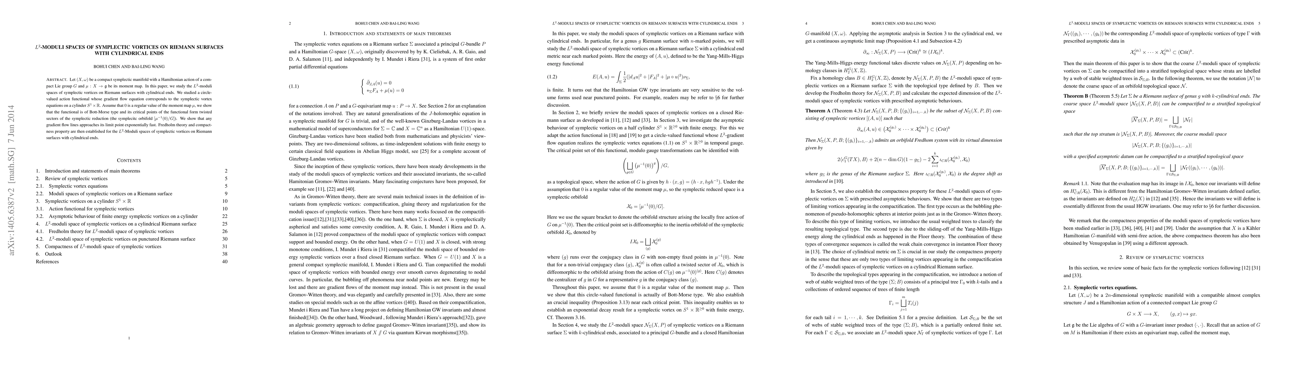 This paper investigates $L^2$-moduli spaces of symplectic vortices on Riemann surfaces with cylindrical ends, showing that a circle-valued action functional’s gradient flow corresponds to these vortices. The critical points form twisted sectors of the symplectic reduction, and gradient flow lines approach their limit points exponentially fast, establishing Fredholm theory and compactness for these moduli spaces.