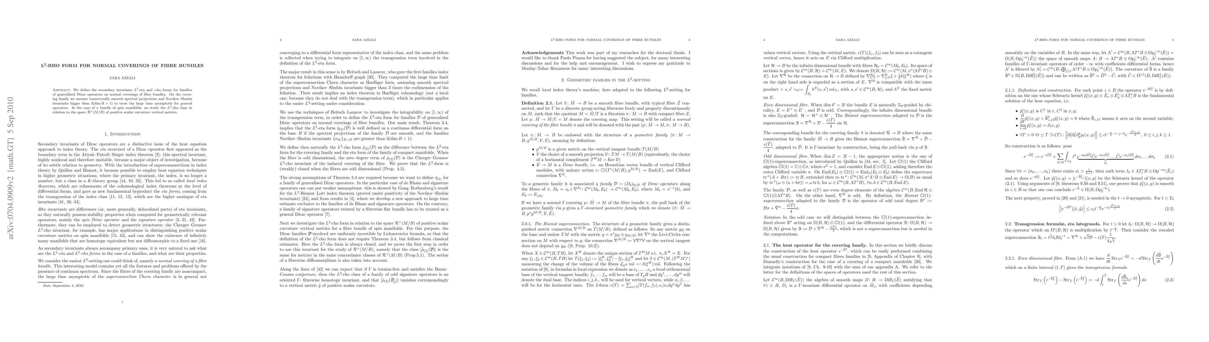 This paper introduces L^2 eta and rho forms as secondary invariants for generalized Dirac operators on normal coverings of fibre bundles, assuming transversally smooth spectral projections and Novikov-Shubin invariants for large time asymptotics. It specifically examines the L^2-rho class in relation to positive scalar curvature vertical metrics in spin manifold bundles.