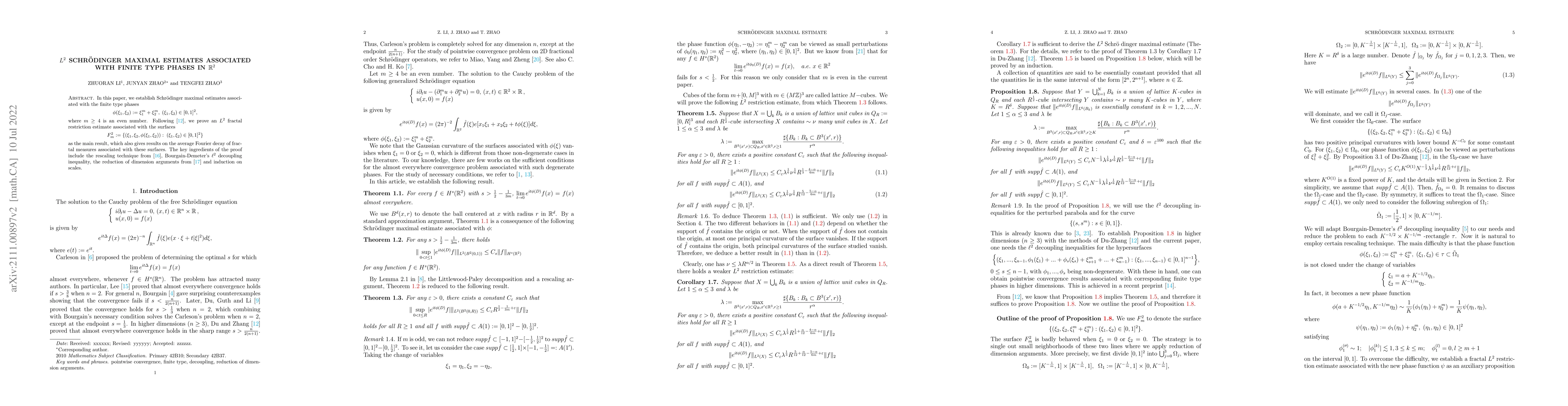 This paper establishes Schrödinger maximal estimates for finite type phases in $\mathbb{R}^2$ and proves an $L^2$ fractal restriction estimate associated with specific surfaces, utilizing techniques like rescaling, Bourgain-Demeter's decoupling inequality, and induction on scales.
