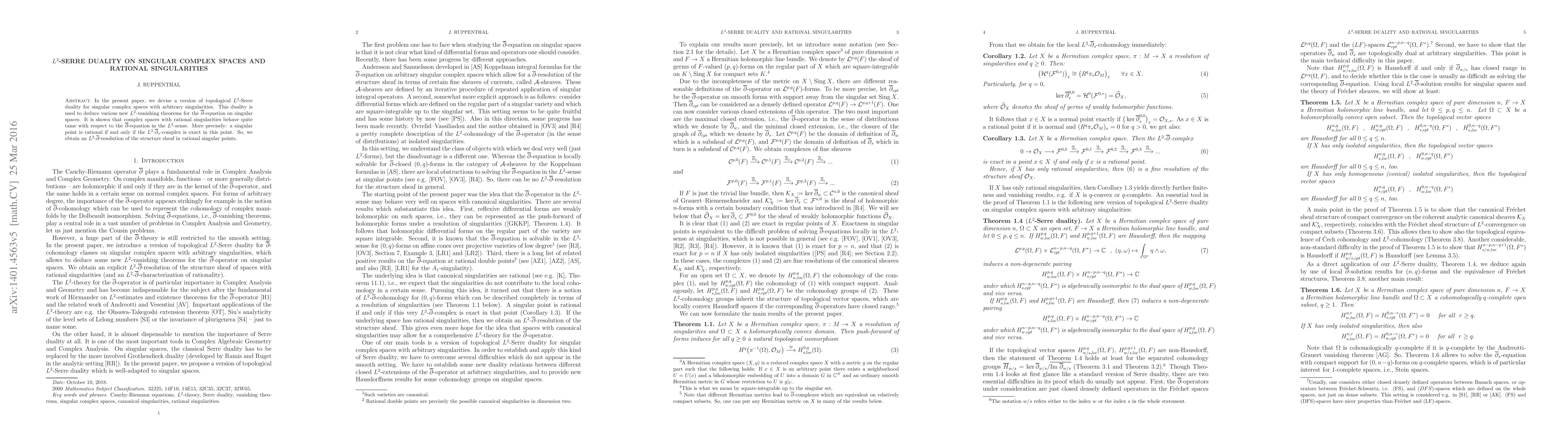 This paper establishes a topological $L^2$-Serre duality for singular complex spaces, applying it to derive new $L^2$-vanishing theorems for the $\bar{\partial}$-equation. It shows that complex spaces with rational singularities exhibit tame behavior regarding the $\bar{\partial}$-equation in the $L^2$-sense, providing an $L^2$-$\bar{\partial}$-resolution of the structure sheaf at rational singular points.
