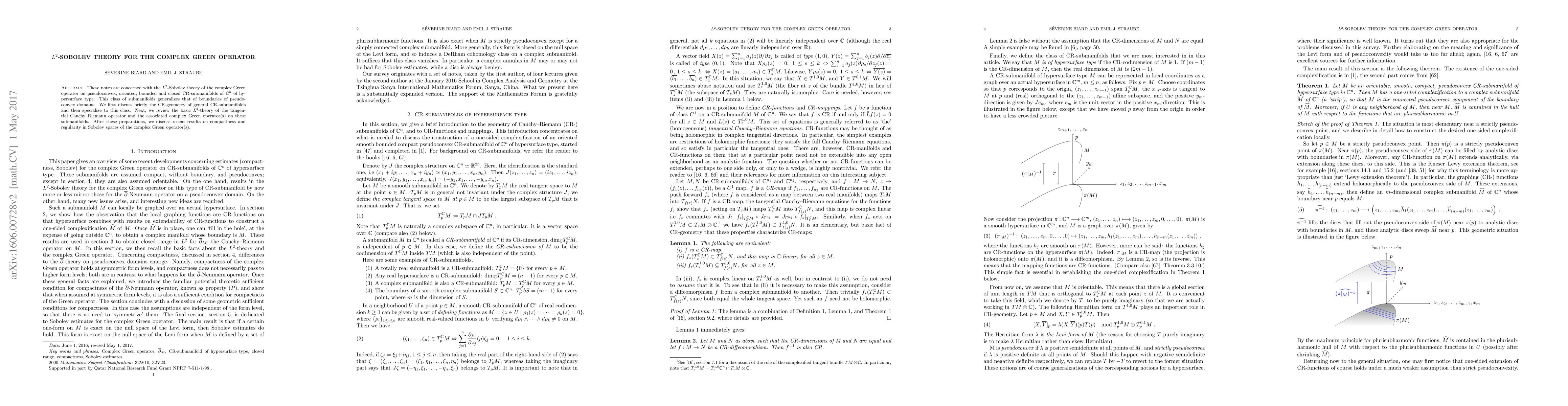 These notes are concerned with the $L^{2}$-Sobolev theory of the complex Green operator on pseudoconvex, oriented, bounded and closed CR--submanifolds of $\mathbb{C}^{n}$ of hypersurface type. This class of submanifolds generalizes that of boundaries of pseudoconvex domains. We first discuss briefly the CR--geometry of general CR--submanifolds and then specialize to this class. Next, we review the basic $L^{2}$-theory of the tangential Cauchy-Riemann operator and the associated complex Green operator(s) on these submanifolds. After these preparations, we discuss recent results on compactness and regularity in Sobolev spaces of the complex Green operator(s).