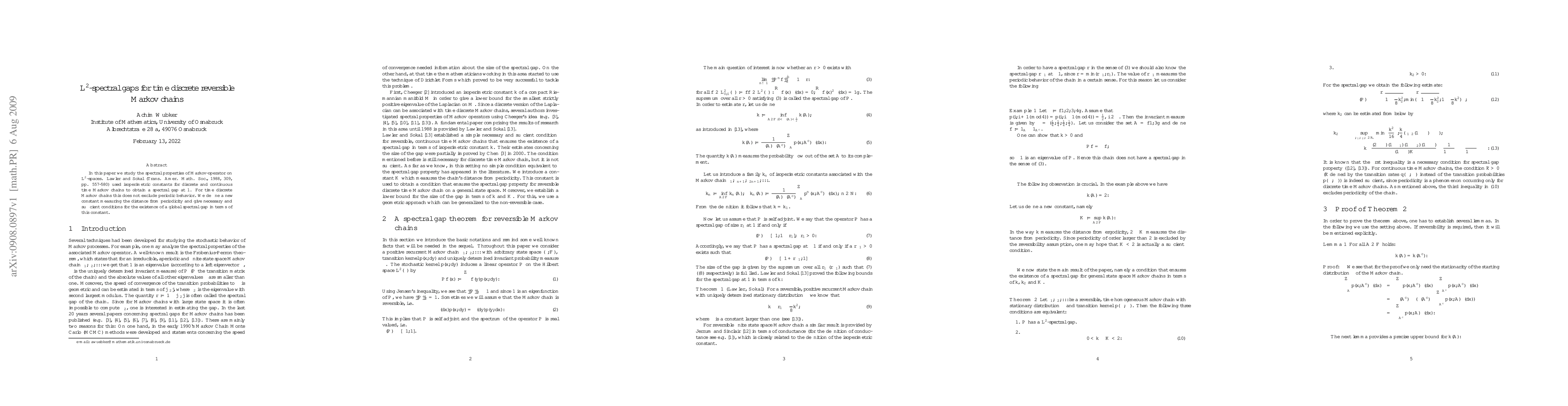 In this paper we study the spectral properties of Markov-operator on $L^{2}$-spaces. Lawler and Sokal (Trans. Amer. Math. Soc., 1988, 309, pp. 557-580) used isoperimetric constants for discrete and continuous time Markov chains to obtain a spectral gap at 1. For time discrete Markov chains this does not exclude periodic behavior. We define a new constant measuring the distance from periodicity and give necessary and sufficient conditions for the existence of a global spectral gap in terms of this constant.