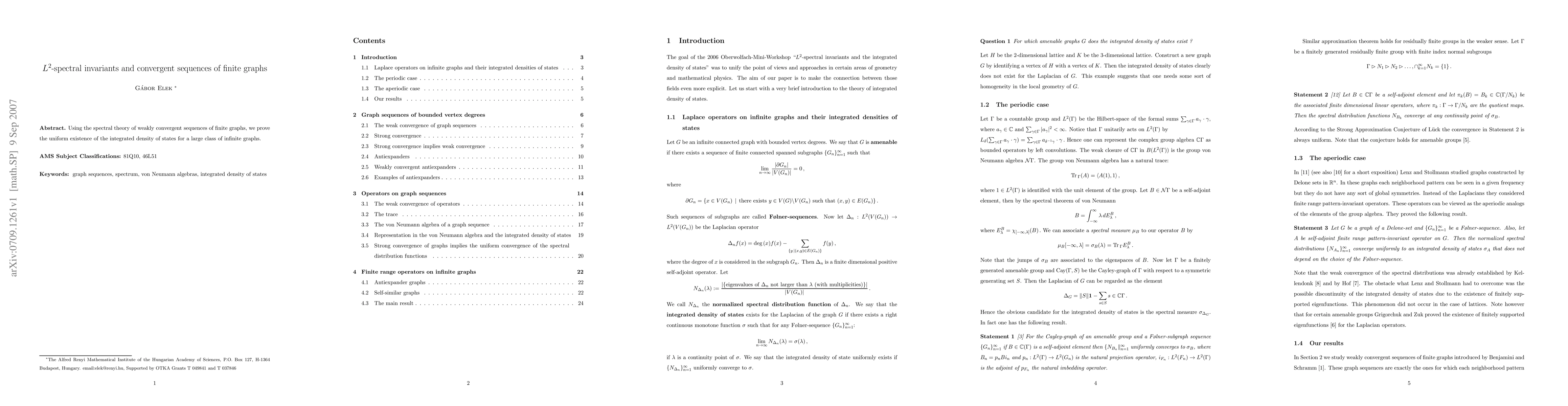 Summary: This paper demonstrates the uniform existence of integrated density of states for a broad class of infinite graphs through the spectral theory of weakly convergent sequences of finite graphs. The study establishes the L^2-spectral invariants for these graphs.