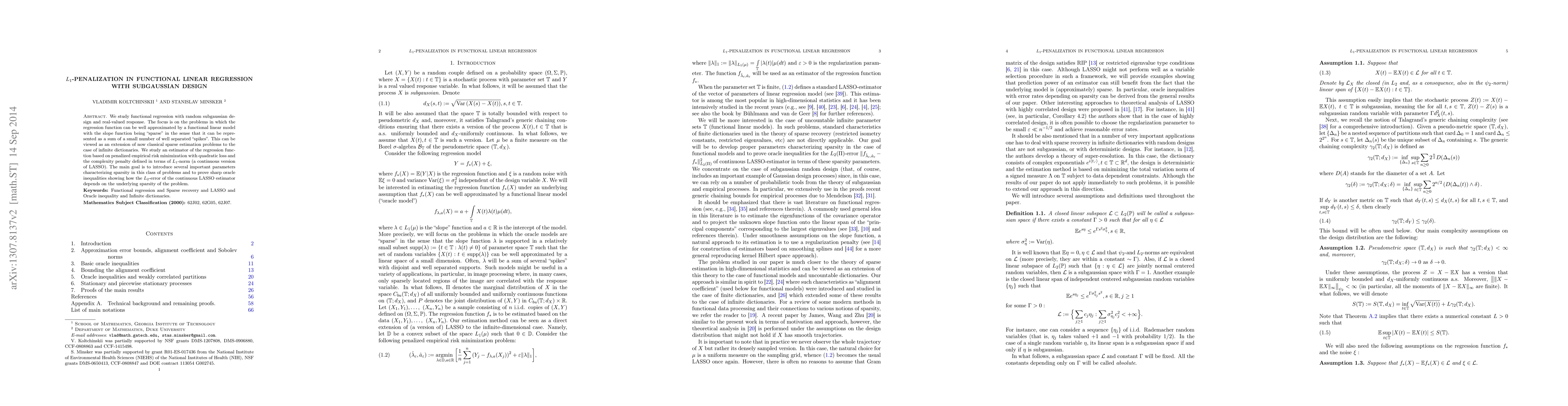 We study functional regression with random subgaussian design and real-valued response. The focus is on the problems in which the regression function can be well approximated by a functional linear model with the slope function being "sparse" in the sense that it can be represented as a sum of a small number of well separated "spikes". This can be viewed as an extension of now classical sparse estimation problems to the case of infinite dictionaries. We study an estimator of the regression function based on penalized empirical risk minimization with quadratic loss and the complexity penalty defined in terms of $L_1$-norm (a continuous version of LASSO). The main goal is to introduce several important parameters characterizing sparsity in this class of problems and to prove sharp oracle inequalities showing how the $L_2$-error of the continuous LASSO estimator depends on the underlying sparsity of the problem.